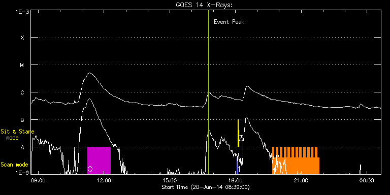 EIS Observation timeline overlay to GOES-Xray curve
