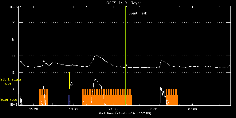 EIS Observation timeline overlay to GOES-Xray curve Code 1" 2" 40" 266" EIS Observations list for this event: STUDY ACRONYM ID DATE OBSERVED DESCRIPTION NOAA# TARGET 0 HH_Flare+AR_180x152 | 41235 | 2014/06/21 15:26:13 | Flare study | | Flare TIMELINE ID DATE OBSERVED FITS FILE XCEN (+W/-E) YCEN (+N/-S) DUR ----------------------------------------------------------------------------------------------------------------- 41235 | 2014/06/21 15:26:13.000 | eis_l0_20140621_152613.fits.gz | 43.58 | -240.07 | 5m17s 41235 | 2014/06/21 15:31:33.000 | eis_l0_20140621_153133.fits.gz | 44.36 | -239.99 | 5m19s 41235 | 2014/06/21 15:36:54.000 | eis_l0_20140621_153654.fits.gz | 45.13 | -239.91 | 5m19s 41235 | 2014/06/21 15:42:16.000 | eis_l0_20140621_154216.fits.gz | 45.98 | -239.91 | 5m18s 41235 | 2014/06/21 15:47:37.000 | eis_l0_20140621_154737.fits.gz | 46.75 | -239.99 | 5m18s 41235 | 2014/06/21 15:52:58.000 | eis_l0_20140621_155258.fits.gz | 47.52 | -239.91 | 5m18s 41235 | 2014/06/21 15:58:19.000 | eis_l0_20140621_155819.fits.gz | 48.45 | -239.99 | 5m19s 1 PRY_slot_contextLITE | 41209 | 2014/06/21 17:38:21 | PRY_slot_contextLITE | 2093 | Active Region TIMELINE ID DATE OBSERVED FITS FILE XCEN (+W/-E) YCEN (+N/-S) DUR ----------------------------------------------------------------------------------------------------------------- 41209 | 2014/06/21 17:38:21.000 | eis_l0_20140621_173821.fits.gz | -15.21 | -0.27 | 2m56s 2 Alignment_266 | 41210 | 2014/06/21 17:41:35 | Alignment_266 | 2093 | Quiet Sun TIMELINE ID DATE OBSERVED FITS FILE XCEN (+W/-E) YCEN (+N/-S) DUR ----------------------------------------------------------------------------------------------------------------- 41210 | 2014/06/21 17:41:35.000 | eis_l0_20140621_174135.fits.gz | -132.57 | -0.42 | 1m22s 3 XRT_synop_AIA | 41211 | 2014/06/21 17:43:43 | XRT_synop_AIA | 2093 | Quiet Sun TIMELINE ID DATE OBSERVED FITS FILE XCEN (+W/-E) YCEN (+N/-S) DUR ----------------------------------------------------------------------------------------------------------------- 41211 | 2014/06/21 17:43:43.000 | eis_l0_20140621_174343.fits.gz | -132.49 | -0.50 | 10s 4 HH_Flare+AR_180x152 | 41237 | 2014/06/21 18:39:50 | Flare study | | Flare TIMELINE ID DATE OBSERVED FITS FILE XCEN (+W/-E) YCEN (+N/-S) DUR ----------------------------------------------------------------------------------------------------------------- 41237 | 2014/06/21 18:39:50.000 | eis_l0_20140621_183950.fits.gz | 72.40 | -250.07 | 5m17s 41237 | 2014/06/21 18:45:10.000 | eis_l0_20140621_184510.fits.gz | 73.17 | -249.99 | 5m18s 41237 | 2014/06/21 18:50:31.000 | eis_l0_20140621_185031.fits.gz | 73.94 | -250.07 | 5m18s 41237 | 2014/06/21 18:55:52.000 | eis_l0_20140621_185552.fits.gz | 74.79 | -250.22 | 5m17s 41237 | 2014/06/21 19:01:12.000 | eis_l0_20140621_190112.fits.gz | 75.56 | -250.30 | 5m18s 41237 | 2014/06/21 19:06:33.000 | eis_l0_20140621_190633.fits.gz | 76.34 | -250.07 | 5m18s 41237 | 2014/06/21 19:11:54.000 | eis_l0_20140621_191154.fits.gz | 77.19 | -250.15 | 5m18s 41237 | 2014/06/21 19:17:15.000 | eis_l0_20140621_191715.fits.gz | 77.96 | -250.30 | 5m17s 41237 | 2014/06/21 19:22:35.000 | eis_l0_20140621_192235.fits.gz | 78.73 | -250.07 | 5m18s 41237 | 2014/06/21 19:27:56.000 | eis_l0_20140621_192756.fits.gz | 79.50 | -250.15 | 5m18s 41237 | 2014/06/21 19:33:17.000 | eis_l0_20140621_193317.fits.gz | 80.28 | -250.15 | 5m18s 41237 | 2014/06/21 19:38:38.000 | eis_l0_20140621_193838.fits.gz | 81.05 | -250.30 | 5m17s 41237 | 2014/06/21 19:43:58.000 | eis_l0_20140621_194358.fits.gz | 81.82 | -250.15 | 5m18s 41237 | 2014/06/21 19:49:19.000 | eis_l0_20140621_194919.fits.gz | 82.67 | -250.07 | 5m18s 41237 | 2014/06/21 19:54:40.000 | eis_l0_20140621_195440.fits.gz | 83.60 | -250.15 | 5m18s 41237 | 2014/06/21 20:00:00.000 | eis_l0_20140621_200000.fits.gz | 84.29 | -250.15 | 5m19s 41237 | 2014/06/21 20:05:22.000 | eis_l0_20140621_200522.fits.gz | 85.07 | -250.15 | 5m18s 41237 | 2014/06/21 20:10:43.000 | eis_l0_20140621_201043.fits.gz | 85.91 | -250.15 | 5m17s 41237 | 2014/06/21 20:16:03.000 | eis_l0_20140621_201603.fits.gz | 86.61 | -250.22 | 5m18s 41237 | 2014/06/21 20:21:23.000 | eis_l0_20140621_202123.fits.gz | 87.38 | -250.22 | 5m18s 41237 | 2014/06/21 20:26:44.000 | eis_l0_20140621_202644.fits.gz | 88.39 | -250.30 | 5m18s 41237 | 2014/06/21 20:32:05.000 | eis_l0_20140621_203205.fits.gz | 89.00 | -250.22 | 5m18s 41237 | 2014/06/21 20:37:26.000 | eis_l0_20140621_203726.fits.gz | 89.85 | -250.30 | 5m18s 41237 | 2014/06/21 20:42:47.000 | eis_l0_20140621_204247.fits.gz | 90.55 | -250.22 | 5m17s 41237 | 2014/06/21 20:48:07.000 | eis_l0_20140621_204807.fits.gz | 91.40 | -250.38 | 5m18s 41237 | 2014/06/21 20:53:27.000 | eis_l0_20140621_205327.fits.gz | 92.25 | -250.22 | 5m18s 41237 | 2014/06/21 20:58:48.000 | eis_l0_20140621_205848.fits.gz | 93.10 | -250.22 | 5m18s 41237 | 2014/06/21 21:04:09.000 | eis_l0_20140621_210409.fits.gz | 93.79 | -250.22 | 5m18s 41237 | 2014/06/21 21:09:30.000 | eis_l0_20140621_210930.fits.gz | 94.64 | -250.30 | 5m18s 41237 | 2014/06/21 21:14:51.000 | eis_l0_20140621_211451.fits.gz | 95.42 | -250.30 | 5m17s 41237 | 2014/06/21 21:20:11.000 | eis_l0_20140621_212011.fits.gz | 96.19 | -250.22 | 5m18s 41237 | 2014/06/21 21:25:32.000 | eis_l0_20140621_212532.fits.gz | 97.04 | -250.22 | 5m18s 41237 | 2014/06/21 21:30:53.000 | eis_l0_20140621_213053.fits.gz | 97.81 | -250.22 | 5m18s 41237 | 2014/06/21 21:36:14.000 | eis_l0_20140621_213614.fits.gz | 98.51 | -249.91 | 5m18s 41237 | 2014/06/21 21:41:35.000 | eis_l0_20140621_214135.fits.gz | 99.36 | -250.15 | 5m18s 41237 | 2014/06/21 21:46:56.000 | eis_l0_20140621_214656.fits.gz | 100.13 | -250.30 | 5m17s 41237 | 2014/06/21 21:52:16.000 | eis_l0_20140621_215216.fits.gz | 100.98 | -250.22 | 5m17s 41237 | 2014/06/21 21:57:36.000 | eis_l0_20140621_215736.fits.gz | 101.67 | -250.22 | 5m17s 41237 | 2014/06/21 22:02:56.000 | eis_l0_20140621_220256.fits.gz | 102.45 | -250.38 | 5m18s 41237 | 2014/06/21 22:08:17.000 | eis_l0_20140621_220817.fits