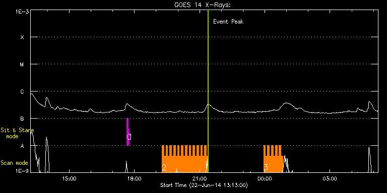 EIS Observation timeline overlay to GOES-Xray curve Code 1" 2" 40" 266" EIS Observations list for this event: STUDY ACRONYM ID DATE OBSERVED DESCRIPTION NOAA# TARGET 0 regcal071 | 41207 | 2014/06/22 17:39:11 | Dark exposures, CCD bottom rows (100s | | Engineering TIMELINE ID DATE OBSERVED FITS FILE XCEN (+W/-E) YCEN (+N/-S) DUR ----------------------------------------------------------------------------------------------------------------- 41207 | 2014/06/22 17:39:11.000 | eis_l0_20140622_173911.fits.gz | 276.92 | -532.68 | 3m22s 1 regcal072 | 41208 | 2014/06/22 17:43:00 | Dark exposures, top CCD rows (100s exp | | Engineering TIMELINE ID DATE OBSERVED FITS FILE XCEN (+W/-E) YCEN (+N/-S) DUR ----------------------------------------------------------------------------------------------------------------- 41208 | 2014/06/22 17:43:00.000 | eis_l0_20140622_174300.fits.gz | 277.54 | -21.61 | 3m22s 2 HH_Flare+AR_180x152 | 41241 | 2014/06/22 19:15:56 | Flare study | | Flare TIMELINE ID DATE OBSERVED FITS FILE XCEN (+W/-E) YCEN (+N/-S) DUR ----------------------------------------------------------------------------------------------------------------- 41241 | 2014/06/22 19:15:56.000 | eis_l0_20140622_191556.fits.gz | 287.84 | -250.61 | 5m18s 41241 | 2014/06/22 19:21:17.000 | eis_l0_20140622_192117.fits.gz | 288.61 | -250.61 | 5m18s 41241 | 2014/06/22 19:26:38.000 | eis_l0_20140622_192638.fits.gz | 289.31 | -250.45 | 5m17s 41241 | 2014/06/22 19:31:58.000 | eis_l0_20140622_193158.fits.gz | 290.16 | -250.84 | 5m17s 41241 | 2014/06/22 19:37:18.000 | eis_l0_20140622_193718.fits.gz | 290.93 | -250.84 | 5m17s 41241 | 2014/06/22 19:42:38.000 | eis_l0_20140622_194238.fits.gz | 291.62 | -250.61 | 5m17s 41241 | 2014/06/22 19:47:58.000 | eis_l0_20140622_194758.fits.gz | 292.40 | -250.68 | 5m17s 41241 | 2014/06/22 19:53:18.000 | eis_l0_20140622_195318.fits.gz | 293.25 | -250.68 | 5m18s 41241 | 2014/06/22 19:58:39.000 | eis_l0_20140622_195839.fits.gz | 293.94 | -250.61 | 5m17s 41241 | 2014/06/22 20:03:59.000 | eis_l0_20140622_200359.fits.gz | 294.64 | -250.76 | 5m19s 41241 | 2014/06/22 20:09:20.000 | eis_l0_20140622_200920.fits.gz | 295.49 | -250.84 | 5m18s 41241 | 2014/06/22 20:14:41.000 | eis_l0_20140622_201441.fits.gz | 296.18 | -250.68 | 5m18s 41241 | 2014/06/22 20:20:02.000 | eis_l0_20140622_202002.fits.gz | 296.95 | -250.53 | 5m17s 41241 | 2014/06/22 20:25:22.000 | eis_l0_20140622_202522.fits.gz | 297.57 | -250.45 | 5m17s 41241 | 2014/06/22 20:30:42.000 | eis_l0_20140622_203042.fits.gz | 298.50 | -250.68 | 5m18s 41241 | 2014/06/22 20:36:03.000 | eis_l0_20140622_203603.fits.gz | 299.20 | -250.53 | 5m18s 41241 | 2014/06/22 20:41:24.000 | eis_l0_20140622_204124.fits.gz | 300.05 | -250.61 | 5m18s 41241 | 2014/06/22 20:46:45.000 | eis_l0_20140622_204645.fits.gz | 300.74 | -250.68 | 5m18s 41241 | 2014/06/22 20:52:06.000 | eis_l0_20140622_205206.fits.gz | 301.51 | -250.68 | 5m18s 41241 | 2014/06/22 20:57:27.000 | eis_l0_20140622_205727.fits.gz | 302.29 | -250.68 | 5m18s 41241 | 2014/06/22 21:02:48.000 | eis_l0_20140622_210248.fits.gz | 303.06 | -250.76 | 5m18s 41241 | 2014/06/22 21:08:09.000 | eis_l0_20140622_210809.fits.gz | 303.75 | -250.68 | 5m18s 41241 | 2014/06/22 21:13:30.000 | eis_l0_20140622_211330.fits.gz | 304.52 | -250.76 | 5m17s 41241 | 2014/06/22 21:18:50.000 | eis_l0_20140622_211850.fits.gz | 305.22 | -250.68 | 5m18s 3 HH_Flare+AR_180x152 | 41275 | 2014/06/22 23:56:43 | Flare study | | Flare TIMELINE ID DATE OBSERVED FITS FILE XCEN (+W/-E) YCEN (+N/-S) DUR ----------------------------------------------------------------------------------------------------------------- 41275 | 2014/06/22 23:56:43.000 | eis_l0_20140622_235643.fits.gz | 333.38 | -211.45 | 5m18s 41275 | 2014/06/23 00:02:04.000 | eis_l0_20140623_000204.fits.gz | 334.15 | -211.53 | 5m19s 41275 | 2014/06/23 00:07:26.000 | eis_l0_20140623_000726.fits.gz | 334.93 | -211.45 | 5m18s 41275 | 2014/06/23 00:12:46.000 | eis_l0_20140623_001246.fits.gz | 335.70 | -211.68 | 5m18s 41275 | 2014/06/23 00:18:07.000 | eis_l0_20140623_001807.fits.gz | 336.39 | -211.53 | 5m18s 41275 | 2014/06/23 00:23:28.000 | eis_l0_20140623_002328.fits.gz | 337.17 | -211.61 | 5m18s 41275 | 2014/06/23 00:28:49.000 | eis_l0_20140623_002849.fits.gz | 337.94 | -211.68 | 5m18s 41275 | 2014/06/23 00:34:09.000 | eis_l0_20140623_003409.fits.gz | 338.79 | -211.61 | 5m19s 41275 | 2014/06/23 00:39:30.000 | eis_l0_20140623_003930.fits.gz | 339.41 | -211.45 | 5m18s 41275 | 2014/06/23 00:44:51.000 | eis_l0_20140623_004451.fits.gz | 340.18 | -211.45 | 5m19s : Check study information : Download file : View thumbnails For this event, also check for: