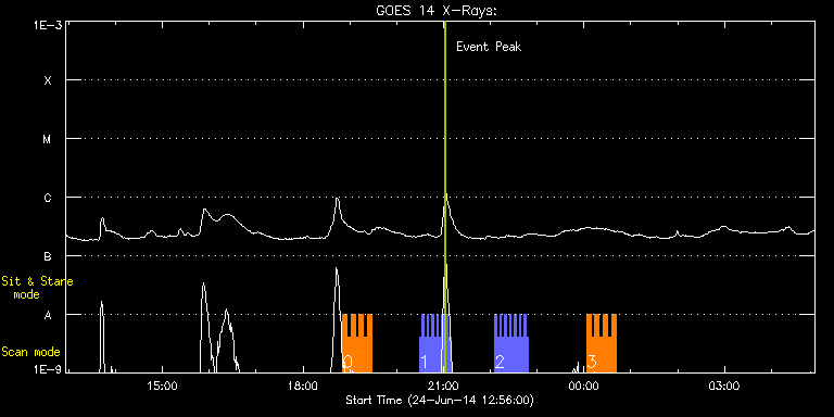 EIS Observation timeline overlay to GOES-Xray curve Code 1" 2" 40" 266" EIS Observations list for this event: STUDY ACRONYM ID DATE OBSERVED DESCRIPTION NOAA# TARGET 0 HH_Flare+AR_180x152 | 41254 | 2014/06/24 18:50:56 | Flare study | | Flare TIMELINE ID DATE OBSERVED FITS FILE XCEN (+W/-E) YCEN (+N/-S) DUR ----------------------------------------------------------------------------------------------------------------- 41254 | 2014/06/24 18:50:56.000 | eis_l0_20140624_185056.fits.gz | 651.28 | -237.13 | 5m18s 41254 | 2014/06/24 18:56:17.000 | eis_l0_20140624_185617.fits.gz | 651.83 | -237.13 | 5m18s 41254 | 2014/06/24 19:01:37.000 | eis_l0_20140624_190137.fits.gz | 652.37 | -237.21 | 5m18s 41254 | 2014/06/24 19:06:58.000 | eis_l0_20140624_190658.fits.gz | 652.98 | -237.05 | 5m18s 41254 | 2014/06/24 19:12:19.000 | eis_l0_20140624_191219.fits.gz | 653.60 | -237.13 | 5m18s 41254 | 2014/06/24 19:17:40.000 | eis_l0_20140624_191740.fits.gz | 654.14 | -237.21 | 5m18s 41254 | 2014/06/24 19:23:01.000 | eis_l0_20140624_192301.fits.gz | 654.68 | -236.82 | 5m17s 1 Alignment_modify_v2 | 41205 | 2014/06/24 20:29:22 | coalignment at N limb | | Quiet Sun TIMELINE ID DATE OBSERVED FITS FILE XCEN (+W/-E) YCEN (+N/-S) DUR ----------------------------------------------------------------------------------------------------------------- 41205 | 2014/06/24 20:29:22.000 | eis_l0_20140624_202922.fits.gz | -9.55 | 944.41 | 2m33s 41205 | 2014/06/24 20:32:29.000 | eis_l0_20140624_203229.fits.gz | -9.55 | 944.48 | 2m34s 41205 | 2014/06/24 20:35:36.000 | eis_l0_20140624_203536.fits.gz | -9.47 | 944.25 | 2m34s 41205 | 2014/06/24 20:38:44.000 | eis_l0_20140624_203844.fits.gz | -9.47 | 944.48 | 2m34s 41205 | 2014/06/24 20:41:51.000 | eis_l0_20140624_204151.fits.gz | -9.55 | 944.33 | 2m34s 41205 | 2014/06/24 20:44:59.000 | eis_l0_20140624_204459.fits.gz | -9.55 | 944.41 | 2m34s 41205 | 2014/06/24 20:48:06.000 | eis_l0_20140624_204806.fits.gz | -9.55 | 944.48 | 2m34s 41205 | 2014/06/24 20:51:14.000 | eis_l0_20140624_205114.fits.gz | -9.47 | 944.41 | 2m34s 41205 | 2014/06/24 20:54:21.000 | eis_l0_20140624_205421.fits.gz | -9.55 | 944.41 | 2m34s 41205 | 2014/06/24 20:57:29.000 | eis_l0_20140624_205729.fits.gz | -9.55 | 944.25 | 2m34s 41205 | 2014/06/24 21:00:36.000 | eis_l0_20140624_210036.fits.gz | -9.47 | 944.48 | 2m34s 41205 | 2014/06/24 21:03:44.000 | eis_l0_20140624_210344.fits.gz | -9.55 | 944.41 | 2m34s 41205 | 2014/06/24 21:06:51.000 | eis_l0_20140624_210651.fits.gz | -9.39 | 944.48 | 2m34s 2 Alignment_modify_v2 | 41206 | 2014/06/24 22:05:45 | coalignment at E limb | | Quiet Sun TIMELINE ID DATE OBSERVED FITS FILE XCEN (+W/-E) YCEN (+N/-S) DUR ----------------------------------------------------------------------------------------------------------------- 41206 | 2014/06/24 22:05:45.000 | eis_l0_20140624_220545.fits.gz | -9893.92 | -9963.20 | 2m34s 41206 | 2014/06/24 22:08:53.000 | eis_l0_20140624_220853.fits.gz | -9893.92 | -9963.20 | 2m33s 41206 | 2014/06/24 22:12:00.000 | eis_l0_20140624_221200.fits.gz | -9893.92 | -9963.20 | 2m34s 41206 | 2014/06/24 22:15:08.000 | eis_l0_20140624_221508.fits.gz | -9893.92 | -9963.20 | 2m34s 41206 | 2014/06/24 22:18:15.000 | eis_l0_20140624_221815.fits.gz | -9893.92 | -9963.20 | 2m34s 41206 | 2014/06/24 22:21:23.000 | eis_l0_20140624_222123.fits.gz | -9893.92 | -9963.20 | 2m34s 41206 | 2014/06/24 22:24:30.000 | eis_l0_20140624_222430.fits.gz | -9893.92 | -9963.20 | 2m34s 41206 | 2014/06/24 22:27:38.000 | eis_l0_20140624_222738.fits.gz | -9893.92 | -9963.20 | 2m34s 41206 | 2014/06/24 22:30:45.000 | eis_l0_20140624_223045.fits.gz | -9893.92 | -9963.20 | 2m34s 41206 | 2014/06/24 22:33:53.000 | eis_l0_20140624_223353.fits.gz | -9893.92 | -9963.20 | 2m34s 41206 | 2014/06/24 22:37:01.000 | eis_l0_20140624_223701.fits.gz | -9893.92 | -9963.20 | 2m33s 41206 | 2014/06/24 22:40:08.000 | eis_l0_20140624_224008.fits.gz | -9893.92 | -9963.20 | 2m34s 41206 | 2014/06/24 22:43:16.000 | eis_l0_20140624_224316.fits.gz | -9893.92 | -9963.20 | 2m34s 41206 | 2014/06/24 22:46:23.000 | eis_l0_20140624_224623.fits.gz | -9893.92 | -9963.20 | 2m34s 3 HH_Flare+AR_180x152 | 41255 | 2014/06/25 00:03:33 | Flare study | | Flare TIMELINE ID DATE OBSERVED FITS FILE XCEN (+W/-E) YCEN (+N/-S) DUR ----------------------------------------------------------------------------------------------------------------- 41255 | 2014/06/25 00:03:33.000 | eis_l0_20140625_000333.fits.gz | 684.11 | -236.20 | 5m19s 41255 | 2014/06/25 00:08:55.000 | eis_l0_20140625_000855.fits.gz | 684.66 | -236.20 | 5m17s 41255 | 2014/06/25 00:14:15.000 | eis_l0_20140625_001415.fits.gz | 685.04 | -236.28 | 5m18s 41255 | 2014/06/25 00:19:36.000 | eis_l0_20140625_001936.fits.gz | 685.66 | -236.05 | 5m18s 41255 | 2014/06/25 00:24:57.000 | eis_l0_20140625_002457.fits.gz | 686.20 | -235.97 | 5m18s 41255 | 2014/06/25 00:30:18.000 | eis_l0_20140625_003018.fits.gz | 686.59 | -236.12 | 5m17s 41255 | 2014/06/25 00:35:38.000 | eis_l0_20140625_003538.fits.gz | 687.28 | -236.12 | 5m18s : Check study information : Download file : View thumbnails For this event, also check for: