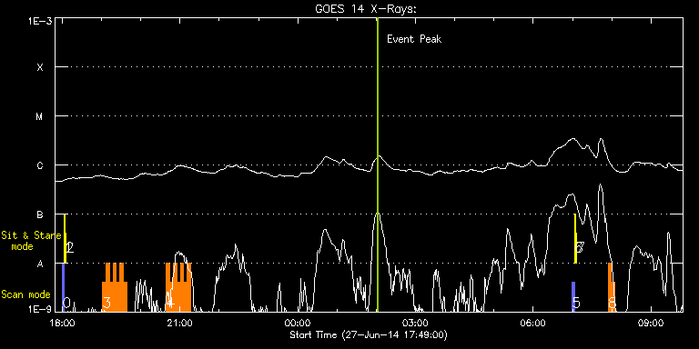 EIS Observation timeline overlay to GOES-Xray curve Code 1" 2" 40" 266" EIS Observations list for this event: STUDY ACRONYM ID DATE OBSERVED DESCRIPTION NOAA# TARGET 0 PRY_slot_contextLITE | 41228 | 2014/06/27 18:00:10 | PRY_slot_contextLITE | 2098 | Active Region TIMELINE ID DATE OBSERVED FITS FILE XCEN (+W/-E) YCEN (+N/-S) DUR ----------------------------------------------------------------------------------------------------------------- 41228 | 2014/06/27 18:00:10.000 | eis_l0_20140627_180010.fits.gz | -15.37 | -0.50 | 2m56s 1 Alignment_266 | 41229 | 2014/06/27 18:03:25 | Alignment_266 | | Quiet Sun TIMELINE ID DATE OBSERVED FITS FILE XCEN (+W/-E) YCEN (+N/-S) DUR ----------------------------------------------------------------------------------------------------------------- 41229 | 2014/06/27 18:03:25.000 | eis_l0_20140627_180325.fits.gz | -132.57 | -0.50 | 1m22s 2 XRT_synop_AIA | 41230 | 2014/06/27 18:05:32 | XRT_synop_AIA | | Quiet Sun TIMELINE ID DATE OBSERVED FITS FILE XCEN (+W/-E) YCEN (+N/-S) DUR ----------------------------------------------------------------------------------------------------------------- 41230 | 2014/06/27 18:05:32.000 | eis_l0_20140627_180532.fits.gz | -132.49 | -0.42 | 10s 3 HH_Flare+AR_180x152 | 41258 | 2014/06/27 19:01:20 | Flare study | | Flare TIMELINE ID DATE OBSERVED FITS FILE XCEN (+W/-E) YCEN (+N/-S) DUR ----------------------------------------------------------------------------------------------------------------- 41258 | 2014/06/27 19:01:20.000 | eis_l0_20140627_190120.fits.gz | 931.47 | -216.50 | 5m18s 41258 | 2014/06/27 19:06:40.000 | eis_l0_20140627_190640.fits.gz | 931.47 | -216.35 | 5m18s 41258 | 2014/06/27 19:12:01.000 | eis_l0_20140627_191201.fits.gz | 931.71 | -216.50 | 5m19s 41258 | 2014/06/27 19:17:22.000 | eis_l0_20140627_191722.fits.gz | 931.71 | -216.35 | 5m19s 41258 | 2014/06/27 19:22:43.000 | eis_l0_20140627_192243.fits.gz | 931.71 | -216.35 | 5m18s 41258 | 2014/06/27 19:28:04.000 | eis_l0_20140627_192804.fits.gz | 931.86 | -216.19 | 5m18s 41258 | 2014/06/27 19:33:25.000 | eis_l0_20140627_193325.fits.gz | 931.63 | -216.19 | 5m17s 4 HH_Flare+AR_180x152 | 41286 | 2014/06/27 20:39:11 | Flare study | | Flare TIMELINE ID DATE OBSERVED FITS FILE XCEN (+W/-E) YCEN (+N/-S) DUR ----------------------------------------------------------------------------------------------------------------- 41286 | 2014/06/27 20:39:11.000 | eis_l0_20140627_203911.fits.gz | 932.69 | -215.81 | 5m18s 41286 | 2014/06/27 20:44:31.000 | eis_l0_20140627_204431.fits.gz | 932.77 | -215.73 | 5m18s 41286 | 2014/06/27 20:49:52.000 | eis_l0_20140627_204952.fits.gz | 932.77 | -215.88 | 5m17s 41286 | 2014/06/27 20:55:12.000 | eis_l0_20140627_205512.fits.gz | 932.85 | -215.65 | 5m18s 41286 | 2014/06/27 21:00:33.000 | eis_l0_20140627_210033.fits.gz | 932.92 | -215.81 | 5m18s 41286 | 2014/06/27 21:05:54.000 | eis_l0_20140627_210554.fits.gz | 932.92 | -215.73 | 5m17s 41286 | 2014/06/27 21:11:14.000 | eis_l0_20140627_211114.fits.gz | 933.08 | -215.58 | 5m18s 5 PRY_slot_contextLITE | 41231 | 2014/06/28 06:59:50 | PRY_slot_contextLITE | 2096 | Active Region TIMELINE ID DATE OBSERVED FITS FILE XCEN (+W/-E) YCEN (+N/-S) DUR ----------------------------------------------------------------------------------------------------------------- 41231 | 2014/06/28 06:59:50.000 | eis_l0_20140628_065950.fits.gz | -15.21 | -0.35 | 2m57s 6 Alignment_266 | 41232 | 2014/06/28 07:03:05 | Alignment_266 | 2096 | Quiet Sun TIMELINE ID DATE OBSERVED FITS FILE XCEN (+W/-E) YCEN (+N/-S) DUR ----------------------------------------------------------------------------------------------------------------- 41232 | 2014/06/28 07:03:05.000 | eis_l0_20140628_070305.fits.gz | -132.49 | -0.42 | 1m22s 7 XRT_synop_AIA | 41233 | 2014/06/28 07:05:39 | XRT_synop_AIA | 2096 | Quiet Sun TIMELINE ID DATE OBSERVED FITS FILE XCEN (+W/-E) YCEN (+N/-S) DUR ----------------------------------------------------------------------------------------------------------------- 41233 | 2014/06/28 07:05:39.000 | eis_l0_20140628_070539.fits.gz | -132.41 | -0.50 | 10s 8 HH_Flare+AR_180x152 | 41259 | 2014/06/28 07:54:20 | Flare study | | Flare TIMELINE ID DATE OBSERVED FITS FILE XCEN (+W/-E) YCEN (+N/-S) DUR ----------------------------------------------------------------------------------------------------------------- 41259 | 2014/06/28 07:54:20.000 | eis_l0_20140628_075420.fits.gz | 929.52 | -216.27 | 5m18s 41259 | 2014/06/28 07:59:41.000 | eis_l0_20140628_075941.fits.gz | 929.60 | -216.43 | 5m19s : Check study information : Download file : View thumbnails For this event, also check for: