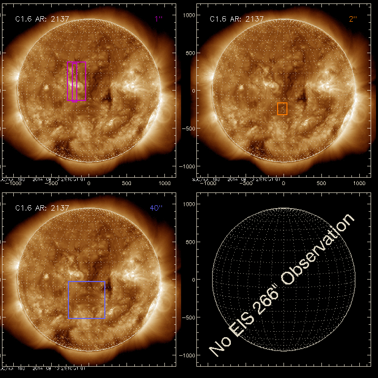 EIS Observation timeline overlay to GOES-Xray curve Code 1" 2" 40" 266" EIS Observations list for this event: STUDY ACRONYM ID DATE OBSERVED DESCRIPTION NOAA# TARGET 0 cam_ar_limb_lite_v2 | 42108 | 2014/08/10 15:02:24 | AR Temperature Diagnostic. NE limb. | | Active Region TIMELINE ID DATE OBSERVED FITS FILE XCEN (+W/-E) YCEN (+N/-S) DUR ----------------------------------------------------------------------------------------------------------------- 42108 | 2014/08/10 15:02:24.000 | eis_l0_20140810_150224.fits.gz | -9914.88 | -9970.20 | 2h6m1s 1 HPW021_VEL_120x512v2 | 42109 | 2014/08/10 19:29:24 | Active region 12135. Scan. | | Active Region TIMELINE ID DATE OBSERVED FITS FILE XCEN (+W/-E) YCEN (+N/-S) DUR ----------------------------------------------------------------------------------------------------------------- 42109 | 2014/08/10 19:29:24.000 | eis_l0_20140810_192924.fits.gz | -189.98 | 99.12 | 46m53s 2 HPW022_VEL_480x512v1 | 42110 | 2014/08/10 22:41:37 | Active region 12135. Large scan. | 2135 | Active Region TIMELINE ID DATE OBSERVED FITS FILE XCEN (+W/-E) YCEN (+N/-S) DUR ----------------------------------------------------------------------------------------------------------------- 42110 | 2014/08/10 22:41:37.000 | eis_l0_20140810_224137.fits.gz | -161.53 | 119.34 | 1h7m39s 3 PRY_slot_context_v3 | 42106 | 2014/08/11 03:19:30 | Spectral synoptic programme. QS. Conte | | Active Region TIMELINE ID DATE OBSERVED FITS FILE XCEN (+W/-E) YCEN (+N/-S) DUR ----------------------------------------------------------------------------------------------------------------- 42106 | 2014/08/11 03:19:30.000 | eis_l0_20140811_031930.fits.gz | -28.96 | -274.19 | 2m57s 4 Atlas_120 | 42107 | 2014/08/11 03:22:51 | Spectral atlas synoptic programme. QS. | | Quiet Sun TIMELINE ID DATE OBSERVED FITS FILE XCEN (+W/-E) YCEN (+N/-S) DUR ----------------------------------------------------------------------------------------------------------------- 42107 | 2014/08/11 03:22:51.000 | eis_l0_20140811_032251.fits.gz | -17.18 | -245.34 | 2h1m39s : Check study information : Download file : View thumbnails For this event, also check for: