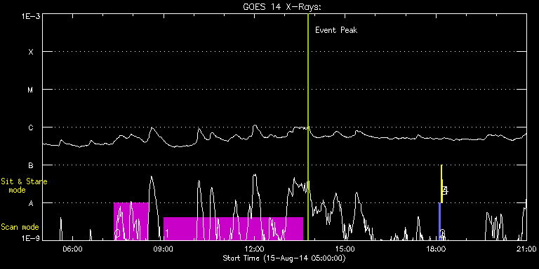 EIS Observation timeline overlay to GOES-Xray curve Code 1" 2" 40" 266" EIS Observations list for this event: STUDY ACRONYM ID DATE OBSERVED DESCRIPTION NOAA# TARGET 0 HPW022_VEL_480x512v1 | 42180 | 2014/08/15 07:22:19 | Active region 12139. Large scan. | 2139 | Active Region TIMELINE ID DATE OBSERVED FITS FILE XCEN (+W/-E) YCEN (+N/-S) DUR ----------------------------------------------------------------------------------------------------------------- 42180 | 2014/08/15 07:22:19.000 | eis_l0_20140815_072219.fits.gz | -471.12 | 98.78 | 1h7m37s 1 SK_CH_DIAG_320x384 | 42168 | 2014/08/15 09:01:08 | HOP81. Polar monitoring campaign. Nort | | Coronal Hole TIMELINE ID DATE OBSERVED FITS FILE XCEN (+W/-E) YCEN (+N/-S) DUR ----------------------------------------------------------------------------------------------------------------- 42168 | 2014/08/15 09:01:08.000 | eis_l0_20140815_090108.fits.gz | -19.04 | 900.70 | 4h35m38s 2 PRY_slot_contextLITE | 42169 | 2014/08/15 18:06:32 | EIS-AIA alignment | | Active Region TIMELINE ID DATE OBSERVED FITS FILE XCEN (+W/-E) YCEN (+N/-S) DUR ----------------------------------------------------------------------------------------------------------------- 42169 | 2014/08/15 18:06:32.000 | eis_l0_20140815_180632.fits.gz | -15.21 | -0.42 | 2m56s 3 Alignment_266 | 42170 | 2014/08/15 18:09:46 | EIS-AIA alignment | | Quiet Sun TIMELINE ID DATE OBSERVED FITS FILE XCEN (+W/-E) YCEN (+N/-S) DUR ----------------------------------------------------------------------------------------------------------------- 42170 | 2014/08/15 18:09:46.000 | eis_l0_20140815_180946.fits.gz | -132.49 | -0.42 | 1m22s 4 XRT_synop_AIA | 42171 | 2014/08/15 18:12:18 | EIS-AIA alignment | | Quiet Sun TIMELINE ID DATE OBSERVED FITS FILE XCEN (+W/-E) YCEN (+N/-S) DUR ----------------------------------------------------------------------------------------------------------------- 42171 | 2014/08/15 18:12:18.000 | eis_l0_20140815_181218.fits.gz | -132.49 | -0.50 | 11s : Check study information : Download file : View thumbnails For this event, also check for: