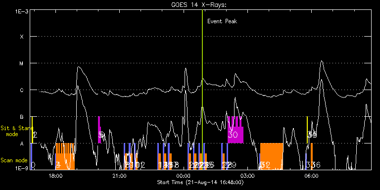 EIS Observation timeline overlay to GOES-Xray curve