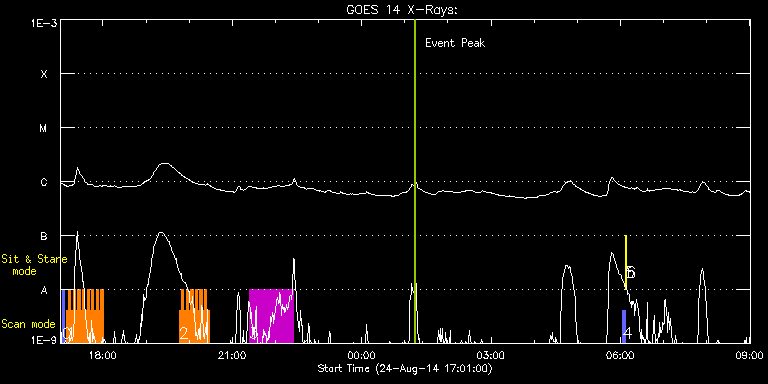 EIS Observation timeline overlay to GOES-Xray curve Code 1" 2" 40" 266" EIS Observations list for this event: STUDY ACRONYM ID DATE OBSERVED DESCRIPTION NOAA# TARGET 0 PRY_slot_contextLITE | 42414 | 2014/08/24 17:03:20 | HOP260 | 2146 | Active Region TIMELINE ID DATE OBSERVED FITS FILE XCEN (+W/-E) YCEN (+N/-S) DUR ----------------------------------------------------------------------------------------------------------------- 42414 | 2014/08/24 17:03:20.000 | eis_l0_20140824_170320.fits.gz | 355.20 | 73.29 | 2m56s 1 qub_hi-cad_flare_v1 | 42415 | 2014/08/24 17:09:03 | HOP260 | | Flare TIMELINE ID DATE OBSERVED FITS FILE XCEN (+W/-E) YCEN (+N/-S) DUR ----------------------------------------------------------------------------------------------------------------- 42415 | 2014/08/24 17:09:03.000 | eis_l0_20140824_170903.fits.gz | 370.71 | 73.21 | 3m10s 42415 | 2014/08/24 17:12:16.000 | eis_l0_20140824_171216.fits.gz | 371.02 | 73.21 | 3m9s 42415 | 2014/08/24 17:15:28.000 | eis_l0_20140824_171528.fits.gz | 371.40 | 73.45 | 3m9s 42415 | 2014/08/24 17:18:40.000 | eis_l0_20140824_171840.fits.gz | 371.86 | 73.37 | 3m10s 42415 | 2014/08/24 17:21:53.000 | eis_l0_20140824_172153.fits.gz | 372.41 | 73.37 | 3m10s 42415 | 2014/08/24 17:25:05.000 | eis_l0_20140824_172505.fits.gz | 372.79 | 73.14 | 3m10s 42415 | 2014/08/24 17:28:18.000 | eis_l0_20140824_172818.fits.gz | 373.18 | 73.37 | 3m10s 42415 | 2014/08/24 17:31:30.000 | eis_l0_20140824_173130.fits.gz | 373.57 | 73.52 | 3m10s 42415 | 2014/08/24 17:34:43.000 | eis_l0_20140824_173443.fits.gz | 374.11 | 73.52 | 3m10s 42415 | 2014/08/24 17:37:56.000 | eis_l0_20140824_173756.fits.gz | 374.57 | 73.68 | 3m10s 42415 | 2014/08/24 17:41:08.000 | eis_l0_20140824_174108.fits.gz | 375.03 | 73.52 | 3m10s 42415 | 2014/08/24 17:44:21.000 | eis_l0_20140824_174421.fits.gz | 375.50 | 73.45 | 3m10s 42415 | 2014/08/24 17:47:33.000 | eis_l0_20140824_174733.fits.gz | 375.96 | 73.52 | 3m10s 42415 | 2014/08/24 17:50:45.000 | eis_l0_20140824_175045.fits.gz | 376.50 | 73.45 | 3m10s 42415 | 2014/08/24 17:53:58.000 | eis_l0_20140824_175358.fits.gz | 376.89 | 73.60 | 3m10s 42415 | 2014/08/24 17:57:10.000 | eis_l0_20140824_175710.fits.gz | 377.35 | 73.60 | 3m10s 2 qub_hi-cad_flare_v1 | 42417 | 2014/08/24 19:46:10 | HOP260 | | Flare TIMELINE ID DATE OBSERVED FITS FILE XCEN (+W/-E) YCEN (+N/-S) DUR ----------------------------------------------------------------------------------------------------------------- 42417 | 2014/08/24 19:46:10.000 | eis_l0_20140824_194610.fits.gz | 392.34 | 74.37 | 3m10s 42417 | 2014/08/24 19:49:22.000 | eis_l0_20140824_194922.fits.gz | 392.80 | 74.22 | 3m10s 42417 | 2014/08/24 19:52:34.000 | eis_l0_20140824_195234.fits.gz | 393.19 | 74.37 | 3m10s 42417 | 2014/08/24 19:55:47.000 | eis_l0_20140824_195547.fits.gz | 393.65 | 74.45 | 3m10s 42417 | 2014/08/24 19:58:59.000 | eis_l0_20140824_195859.fits.gz | 394.04 | 74.45 | 3m10s 42417 | 2014/08/24 20:02:12.000 | eis_l0_20140824_200212.fits.gz | 394.58 | 74.60 | 3m10s 42417 | 2014/08/24 20:05:25.000 | eis_l0_20140824_200525.fits.gz | 394.89 | 74.37 | 3m9s 42417 | 2014/08/24 20:08:37.000 | eis_l0_20140824_200837.fits.gz | 395.43 | 74.45 | 3m10s 42417 | 2014/08/24 20:11:50.000 | eis_l0_20140824_201150.fits.gz | 395.81 | 74.68 | 3m10s 42417 | 2014/08/24 20:15:02.000 | eis_l0_20140824_201502.fits.gz | 396.28 | 74.68 | 3m10s 42417 | 2014/08/24 20:18:15.000 | eis_l0_20140824_201815.fits.gz | 396.66 | 74.60 | 3m9s 42417 | 2014/08/24 20:21:27.000 | eis_l0_20140824_202127.fits.gz | 397.20 | 74.68 | 3m10s 42417 | 2014/08/24 20:24:39.000 | eis_l0_20140824_202439.fits.gz | 397.67 | 74.76 | 3m10s 3 HPW021_VEL_120x512v1 | 42430 | 2014/08/24 21:23:26 | flare study | | Active Region TIMELINE ID DATE OBSERVED FITS FILE XCEN (+W/-E) YCEN (+N/-S) DUR ----------------------------------------------------------------------------------------------------------------- 42430 | 2014/08/24 21:23:26.000 | eis_l0_20140824_212326.fits.gz | -618.16 | 67.10 | 1h1m53s 4 PRY_slot_contextLITE | 42436 | 2014/08/25 06:03:33 | pry_slot_contextlite | | Active Region TIMELINE ID DATE OBSERVED FITS FILE XCEN (+W/-E) YCEN (+N/-S) DUR ----------------------------------------------------------------------------------------------------------------- 42436 | 2014/08/25 06:03:33.000 | eis_l0_20140825_060333.fits.gz | -31.51 | -3.50 | 2m56s 5 Alignment_266 | 42437 | 2014/08/25 06:06:48 | Alighment_266 | | Quiet Sun TIMELINE ID DATE OBSERVED FITS FILE XCEN (+W/-E) YCEN (+N/-S) DUR ----------------------------------------------------------------------------------------------------------------- 42437 | 2014/08/25 06:06:48.000 | eis_l0_20140825_060648.fits.gz | -148.96 | -3.58 | 1m21s 6 XRT_synop_AIA | 42438 | 2014/08/25 06:08:55 | XRT_synop_AIA | | Quiet Sun TIMELINE ID DATE OBSERVED FITS FILE XCEN (+W/-E) YCEN (+N/-S) DUR ----------------------------------------------------------------------------------------------------------------- 42438 | 2014/08/25 06:08:55.000 | eis_l0_20140825_060855.fits.gz | -148.96 | -3.50 | 10s : Check study information : Download file : View thumbnails For this event, also check for:
