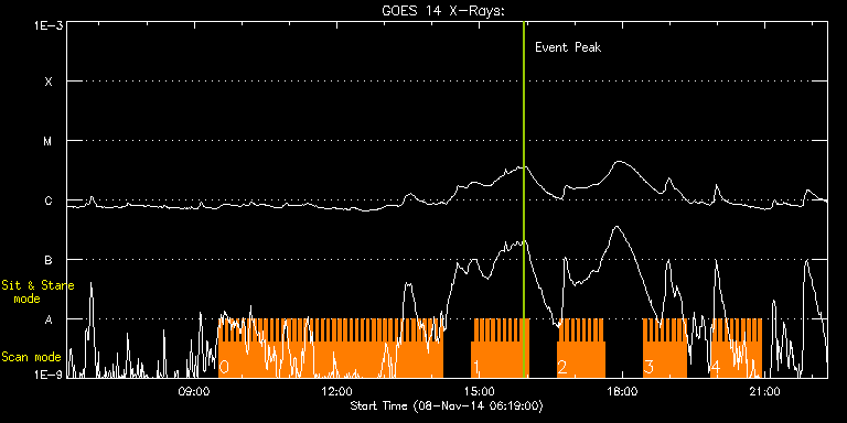 EIS Observation timeline overlay to GOES-Xray curve Code 1" 2" 40" 266" EIS Observations list for this event: STUDY ACRONYM ID DATE OBSERVED DESCRIPTION NOAA# TARGET 0 HH_Flare_raster_v6 | 43704 | 2014/11/08 09:31:33 | Major Flare Watch observation | | Flare TIMELINE ID DATE OBSERVED FITS FILE XCEN (+W/-E) YCEN (+N/-S) DUR ----------------------------------------------------------------------------------------------------------------- 43704 | 2014/11/08 09:31:33.000 | eis_l0_20141108_093133.fits.gz | -460.91 | 189.85 | 3m32s 43704 | 2014/11/08 09:35:07.000 | eis_l0_20141108_093507.fits.gz | -460.53 | 189.92 | 3m32s 43704 | 2014/11/08 09:38:42.000 | eis_l0_20141108_093842.fits.gz | -459.99 | 189.85 | 3m31s 43704 | 2014/11/08 09:42:16.000 | eis_l0_20141108_094216.fits.gz | -459.60 | 189.85 | 3m31s 43704 | 2014/11/08 09:45:50.000 | eis_l0_20141108_094550.fits.gz | -459.14 | 189.77 | 3m31s 43704 | 2014/11/08 09:49:24.000 | eis_l0_20141108_094924.fits.gz | -458.60 | 189.62 | 3m32s 43704 | 2014/11/08 09:52:59.000 | eis_l0_20141108_095259.fits.gz | -458.13 | 189.92 | 3m32s 43704 | 2014/11/08 09:56:34.000 | eis_l0_20141108_095634.fits.gz | -457.67 | 189.77 | 3m32s 43704 | 2014/11/08 10:00:09.000 | eis_l0_20141108_100009.fits.gz | -457.28 | 189.69 | 3m31s 43704 | 2014/11/08 10:03:43.000 | eis_l0_20141108_100343.fits.gz | -456.66 | 189.77 | 3m31s 43704 | 2014/11/08 10:07:17.000 | eis_l0_20141108_100717.fits.gz | -456.20 | 189.77 | 3m32s 43704 | 2014/11/08 10:10:52.000 | eis_l0_20141108_101052.fits.gz | -455.89 | 189.62 | 3m31s 43704 | 2014/11/08 10:14:26.000 | eis_l0_20141108_101426.fits.gz | -455.35 | 189.69 | 3m31s 43704 | 2014/11/08 10:18:00.000 | eis_l0_20141108_101800.fits.gz | -454.73 | 189.54 | 3m32s 43704 | 2014/11/08 10:21:34.000 | eis_l0_20141108_102134.fits.gz | -454.27 | 189.46 | 3m32s 43704 | 2014/11/08 10:25:09.000 | eis_l0_20141108_102509.fits.gz | -453.88 | 189.69 | 3m32s 43704 | 2014/11/08 10:28:43.000 | eis_l0_20141108_102843.fits.gz | -453.34 | 189.62 | 3m32s 43704 | 2014/11/08 10:32:18.000 | eis_l0_20141108_103218.fits.gz | -452.88 | 189.46 | 3m31s 43704 | 2014/11/08 10:35:52.000 | eis_l0_20141108_103552.fits.gz | -452.42 | 189.62 | 3m31s 43704 | 2014/11/08 10:39:25.000 | eis_l0_20141108_103925.fits.gz | -451.95 | 189.69 | 3m32s 43704 | 2014/11/08 10:43:00.000 | eis_l0_20141108_104300.fits.gz | -451.41 | 189.54 | 3m32s 43704 | 2014/11/08 10:46:35.000 | eis_l0_20141108_104635.fits.gz | -450.95 | 189.54 | 3m30s 43704 | 2014/11/08 10:50:08.000 | eis_l0_20141108_105008.fits.gz | -450.48 | 189.54 | 3m31s 43704 | 2014/11/08 10:53:42.000 | eis_l0_20141108_105342.fits.gz | -450.02 | 189.38 | 3m32s 43704 | 2014/11/08 10:57:16.000 | eis_l0_20141108_105716.fits.gz | -449.56 | 189.54 | 3m32s 43704 | 2014/11/08 11:00:51.000 | eis_l0_20141108_110051.fits.gz | -449.02 | 189.62 | 3m31s 43704 | 2014/11/08 11:04:25.000 | eis_l0_20141108_110425.fits.gz | -448.63 | 189.69 | 3m32s 43704 | 2014/11/08 11:08:00.000 | eis_l0_20141108_110800.fits.gz | -448.17 | 189.54 | 3m32s 43704 | 2014/11/08 11:11:34.000 | eis_l0_20141108_111134.fits.gz | -447.70 | 189.46 | 3m32s 43704 | 2014/11/08 11:15:09.000 | eis_l0_20141108_111509.fits.gz | -447.24 | 189.62 | 3m32s 43704 | 2014/11/08 11:18:44.000 | eis_l0_20141108_111844.fits.gz | -446.78 | 189.62 | 3m31s 43704 | 2014/11/08 11:22:18.000 | eis_l0_20141108_112218.fits.gz | -446.24 | 189.54 | 3m32s 43704 | 2014/11/08 11:25:53.000 | eis_l0_20141108_112553.fits.gz | -445.70 | 189.31 | 3m31s 43704 | 2014/11/08 11:29:26.000 | eis_l0_20141108_112926.fits.gz | -445.23 | 189.31 | 3m32s 43704 | 2014/11/08 11:33:01.000 | eis_l0_20141108_113301.fits.gz | -444.85 | 189.46 | 3m32s 43704 | 2014/11/08 11:36:35.000 | eis_l0_20141108_113635.fits.gz | -444.38 | 189.38 | 3m32s 43704 | 2014/11/08 11:40:10.000 | eis_l0_20141108_114010.fits.gz | -443.92 | 189.31 | 3m31s 43704 | 2014/11/08 11:43:44.000 | eis_l0_20141108_114344.fits.gz | -443.38 | 189.31 | 3m31s 43704 | 2014/11/08 11:47:18.000 | eis_l0_20141108_114718.fits.gz | -442.91 | 189.31 | 3m31s 43704 | 2014/11/08 11:50:52.000 | eis_l0_20141108_115052.fits.gz | -442.45 | 189.38 | 3m32s 43704 | 2014/11/08 11:54:26.000 | eis_l0_20141108_115426.fits.gz | -441.91 | 189.46 | 3m31s 43704 | 2014/11/08 11:58:00.000 | eis_l0_20141108_115800.fits.gz | -441.45 | 189.31 | 3m32s 43704 | 2014/11/08 12:01:35.000 | eis_l0_20141108_120135.fits.gz | -441.06 | 189.23 | 3m31s 43704 | 2014/11/08 12:05:09.000 | eis_l0_20141108_120509.fits.gz | -440.44 | 189.38 | 3m32s 43704 | 2014/11/08 12:08:44.000 | eis_l0_20141108_120844.fits.gz | -439.98 | 189.23 | 3m31s 43704 | 2014/11/08 12:12:18.000 | eis_l0_20141108_121218.fits.gz | -439.44 | 189.31 | 3m32s 43704 | 2014/11/08 12:15:53.000 | eis_l0_20141108_121553.fits.gz | -438.97 | 189.38 | 3m31s 43704 | 2014/11/08 12:19:27.000 | eis_l0_20141108_121927.fits.gz | -438.59 | 189.23 | 3m32s 43704 | 2014/11/08 12:23:02.000 | eis_l0_20141108_122302.fits.gz | -438.05 | 189.15 | 3m31s 43704 | 2014/11/08 12:26:36.000 | eis_l0_20141108_122636.fits.gz | -437.58 | 189.38 | 3m31s 43704 | 2014/11/08 12:30:10.000 | eis_l0_20141108_123010.fits.gz | -437.04 | 189.31 | 3m32s 43704 | 2014/11/08 12:33:45.000 | eis_l0_20141108_123345.fits.gz | -436.66 | 189.15 | 3m31s 43704 | 2014/11/08 12:37:18.000 | eis_l0_20141108_123718.fits.gz | -436.19 | 189.23 | 3m32s 43704 | 2014/11/08 12:40:53.000 | eis_l0_20141108_124053.fits.gz | -435.58 | 189.07 | 3m32s 43704 | 2014/11/08 12:44:28.000 | eis_l0_20141108_124428.fits.gz | -435.19 | 189.23 | 3m31s 43704 | 2014/11/08 12:48:02.000 | eis_l0_20141108_124802.fits.gz | -434.80 | 189.31 | 3m31s 43704 | 2014/11/08 12:51:36.000 | eis_l0_20141108_125136.fits.gz | -434.26 | 189.38 | 3m31s 43704 | 2014/11/08 12:55:10.000 | eis_l0_20141108_125510.fits.gz | -433.80 | 189.31 | 3m32s 43704 | 2014/11/08 12:58:45.000 | eis_l0_20141108_125845.fits.gz | -433.26 | 189.23 | 3m30s 43704 | 2014/11/08 13:02:18.000 | eis_l0_20141108_130218.fits.gz | -432.80 | 189.07 | 3m32s 43704 | 2014/11/08 13:05:53.000 | eis_l0_