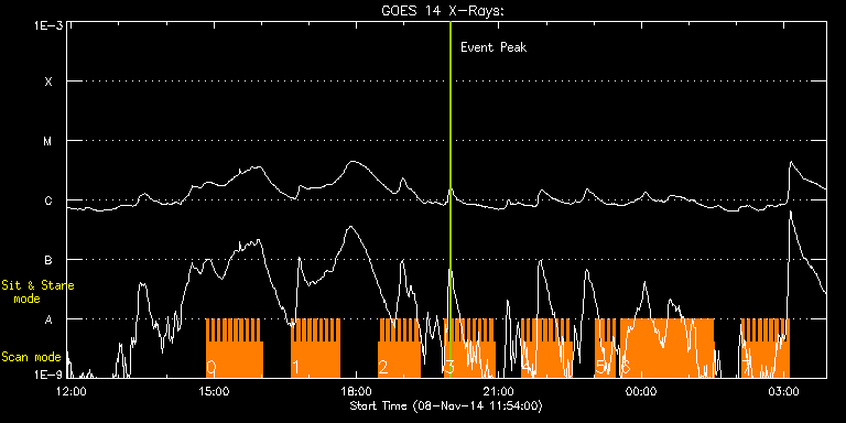 EIS Observation timeline overlay to GOES-Xray curve Code 1" 2" 40" 266" EIS Observations list for this event: STUDY ACRONYM ID DATE OBSERVED DESCRIPTION NOAA# TARGET 0 HH_Flare_raster_v6 | 43722 | 2014/11/08 14:50:13 | Major Flare Watch observation | | Flare TIMELINE ID DATE OBSERVED FITS FILE XCEN (+W/-E) YCEN (+N/-S) DUR ----------------------------------------------------------------------------------------------------------------- 43722 | 2014/11/08 14:50:13.000 | eis_l0_20141108_145013.fits.gz | -418.44 | 188.92 | 3m31s 43722 | 2014/11/08 14:53:47.000 | eis_l0_20141108_145347.fits.gz | -417.98 | 188.84 | 3m31s 43722 | 2014/11/08 14:57:21.000 | eis_l0_20141108_145721.fits.gz | -417.44 | 188.76 | 3m32s 43722 | 2014/11/08 15:00:56.000 | eis_l0_20141108_150056.fits.gz | -417.05 | 188.76 | 3m31s 43722 | 2014/11/08 15:04:30.000 | eis_l0_20141108_150430.fits.gz | -416.51 | 188.84 | 3m30s 43722 | 2014/11/08 15:08:03.000 | eis_l0_20141108_150803.fits.gz | -415.97 | 188.61 | 3m32s 43722 | 2014/11/08 15:11:38.000 | eis_l0_20141108_151138.fits.gz | -415.51 | 188.69 | 3m31s 43722 | 2014/11/08 15:15:12.000 | eis_l0_20141108_151512.fits.gz | -415.05 | 188.76 | 3m31s 43722 | 2014/11/08 15:18:46.000 | eis_l0_20141108_151846.fits.gz | -414.58 | 188.69 | 3m32s 43722 | 2014/11/08 15:22:21.000 | eis_l0_20141108_152221.fits.gz | -414.12 | 188.69 | 3m31s 43722 | 2014/11/08 15:25:55.000 | eis_l0_20141108_152555.fits.gz | -413.58 | 188.76 | 3m32s 43722 | 2014/11/08 15:29:30.000 | eis_l0_20141108_152930.fits.gz | -413.11 | 189.00 | 3m31s 43722 | 2014/11/08 15:33:04.000 | eis_l0_20141108_153304.fits.gz | -412.57 | 188.61 | 3m31s 43722 | 2014/11/08 15:36:38.000 | eis_l0_20141108_153638.fits.gz | -412.11 | 188.61 | 3m31s 43722 | 2014/11/08 15:40:12.000 | eis_l0_20141108_154012.fits.gz | -411.65 | 188.76 | 3m31s 43722 | 2014/11/08 15:43:46.000 | eis_l0_20141108_154346.fits.gz | -411.18 | 188.61 | 3m32s 43722 | 2014/11/08 15:47:21.000 | eis_l0_20141108_154721.fits.gz | -410.64 | 188.69 | 3m31s 43722 | 2014/11/08 15:50:55.000 | eis_l0_20141108_155055.fits.gz | -410.18 | 188.76 | 3m31s 43722 | 2014/11/08 15:54:29.000 | eis_l0_20141108_155429.fits.gz | -409.71 | 188.61 | 3m32s 43722 | 2014/11/08 15:58:04.000 | eis_l0_20141108_155804.fits.gz | -409.17 | 188.53 | 3m31s 1 HH_Flare_raster_v6 | 43723 | 2014/11/08 16:37:43 | Major Flare Watch observation | | Flare TIMELINE ID DATE OBSERVED FITS FILE XCEN (+W/-E) YCEN (+N/-S) DUR ----------------------------------------------------------------------------------------------------------------- 43723 | 2014/11/08 16:37:43.000 | eis_l0_20141108_163743.fits.gz | -417.13 | 188.76 | 3m32s 43723 | 2014/11/08 16:41:17.000 | eis_l0_20141108_164117.fits.gz | -403.15 | 188.53 | 3m32s 43723 | 2014/11/08 16:44:52.000 | eis_l0_20141108_164452.fits.gz | -402.84 | 188.38 | 3m30s 43723 | 2014/11/08 16:48:25.000 | eis_l0_20141108_164825.fits.gz | -402.30 | 188.46 | 3m32s 43723 | 2014/11/08 16:52:00.000 | eis_l0_20141108_165200.fits.gz | -401.84 | 188.53 | 3m31s 43723 | 2014/11/08 16:55:34.000 | eis_l0_20141108_165534.fits.gz | -401.30 | 188.46 | 3m31s 43723 | 2014/11/08 16:59:08.000 | eis_l0_20141108_165908.fits.gz | -400.91 | 188.30 | 3m32s 43723 | 2014/11/08 17:02:42.000 | eis_l0_20141108_170242.fits.gz | -400.45 | 188.38 | 3m32s 43723 | 2014/11/08 17:06:16.000 | eis_l0_20141108_170616.fits.gz | -403.15 | 188.53 | 3m31s 43723 | 2014/11/08 17:09:50.000 | eis_l0_20141108_170950.fits.gz | -403.15 | 188.53 | 3m32s 43723 | 2014/11/08 17:13:24.000 | eis_l0_20141108_171324.fits.gz | -403.15 | 188.53 | 3m32s 43723 | 2014/11/08 17:16:59.000 | eis_l0_20141108_171659.fits.gz | -403.15 | 188.53 | 3m31s 43723 | 2014/11/08 17:20:33.000 | eis_l0_20141108_172033.fits.gz | -403.15 | 188.53 | 3m31s 43723 | 2014/11/08 17:24:07.000 | eis_l0_20141108_172407.fits.gz | -403.15 | 188.53 | 3m31s 43723 | 2014/11/08 17:27:41.000 | eis_l0_20141108_172741.fits.gz | -403.15 | 188.53 | 3m32s 43723 | 2014/11/08 17:31:15.000 | eis_l0_20141108_173115.fits.gz | -403.15 | 188.53 | 3m32s 43723 | 2014/11/08 17:34:50.000 | eis_l0_20141108_173450.fits.gz | -403.15 | 188.53 | 3m31s 2 HH_Flare_raster_v6 | 43705 | 2014/11/08 18:27:13 | Major Flare Watch observation | | Flare TIMELINE ID DATE OBSERVED FITS FILE XCEN (+W/-E) YCEN (+N/-S) DUR ----------------------------------------------------------------------------------------------------------------- 43705 | 2014/11/08 18:27:13.000 | eis_l0_20141108_182713.fits.gz | -388.78 | 188.30 | 3m31s 43705 | 2014/11/08 18:30:47.000 | eis_l0_20141108_183047.fits.gz | -388.24 | 188.22 | 3m31s 43705 | 2014/11/08 18:34:21.000 | eis_l0_20141108_183421.fits.gz | -387.70 | 188.30 | 3m31s 43705 | 2014/11/08 18:37:55.000 | eis_l0_20141108_183755.fits.gz | -387.24 | 188.07 | 3m32s 43705 | 2014/11/08 18:41:30.000 | eis_l0_20141108_184130.fits.gz | -386.77 | 188.22 | 3m31s 43705 | 2014/11/08 18:45:04.000 | eis_l0_20141108_184504.fits.gz | -391.33 | 188.22 | 3m31s 43705 | 2014/11/08 18:48:38.000 | eis_l0_20141108_184838.fits.gz | -391.33 | 188.22 | 3m31s 43705 | 2014/11/08 18:52:12.000 | eis_l0_20141108_185212.fits.gz | -391.33 | 188.22 | 3m31s 43705 | 2014/11/08 18:55:46.000 | eis_l0_20141108_185546.fits.gz | -391.33 | 188.22 | 3m32s 43705 | 2014/11/08 18:59:21.000 | eis_l0_20141108_185921.fits.gz | -391.33 | 188.22 | 3m31s 43705 | 2014/11/08 19:02:55.000 | eis_l0_20141108_190255.fits.gz | -391.33 | 188.22 | 3m32s 43705 | 2014/11/08 19:06:30.000 | eis_l0_20141108_190630.fits.gz | -391.33 | 188.22 | 3m31s 43705 | 2014/11/08 19:10:04.000 | eis_l0_20141108_191004.fits.gz | -382.60 | 188.38 | 3m31s 43705 | 2014/11/08 19:13:38.000 | eis_l0_20141108_191338.fits.gz | -382.29 | 188.15 | 3m31s 43705 | 2014/11/08 19:17:12.000 | eis_l0_20141108_191712.fits.gz | -381.75 | 187.99 | 3m31s 3 HH_Flare_raster_v6 | 43724 | 2014/11/08 19:51:13 | Major Flare Watch observation | | Flare TIMELINE ID DATE OBSERVED FITS FILE XCEN (+W/-E) YCEN (+N/-S) DUR ------------------------------------------------------------------------
