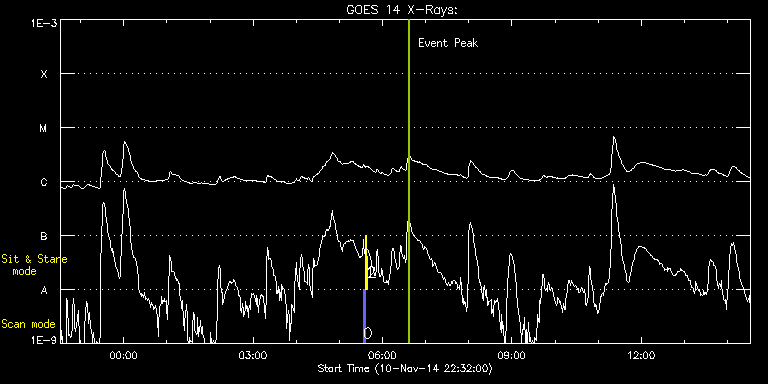 EIS Observation timeline overlay to GOES-Xray curve Code 1" 2" 40" 266" EIS Observations list for this event: STUDY ACRONYM ID DATE OBSERVED DESCRIPTION NOAA# TARGET 0 PRY_slot_contextLITE | 43697 | 2014/11/11 05:33:20 | alignment | 2205 | Active Region TIMELINE ID DATE OBSERVED FITS FILE XCEN (+W/-E) YCEN (+N/-S) DUR ----------------------------------------------------------------------------------------------------------------- 43697 | 2014/11/11 05:33:20.000 | eis_l0_20141111_053320.fits.gz | -30.02 | -2.42 | 2m56s 1 Alignment_266 | 43698 | 2014/11/11 05:36:35 | alignment | | Quiet Sun TIMELINE ID DATE OBSERVED FITS FILE XCEN (+W/-E) YCEN (+N/-S) DUR ----------------------------------------------------------------------------------------------------------------- 43698 | 2014/11/11 05:36:35.000 | eis_l0_20141111_053635.fits.gz | -147.54 | -2.42 | 1m22s 2 XRT_synop_AIA | 43699 | 2014/11/11 05:38:42 | alignment | | Quiet Sun TIMELINE ID DATE OBSERVED FITS FILE XCEN (+W/-E) YCEN (+N/-S) DUR ----------------------------------------------------------------------------------------------------------------- 43699 | 2014/11/11 05:38:42.000 | eis_l0_20141111_053842.fits.gz | -147.46 | -2.58 | 10s : Check study information : Download file : View thumbnails For this event, also check for: