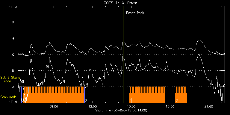 EIS Observation timeline overlay to GOES-Xray curve Code 1" 2" 40" 266" EIS Observations list for this event: STUDY ACRONYM ID DATE OBSERVED DESCRIPTION NOAA# TARGET 0 PRY_slot_contextLITE | 49287 | 2015/10/30 06:27:50 | EIS pointing monitoring | 2442 | Active Region TIMELINE ID DATE OBSERVED FITS FILE XCEN (+W/-E) YCEN (+N/-S) DUR ----------------------------------------------------------------------------------------------------------------- 49287 | 2015/10/30 06:27:50.000 | eis_l0_20151030_062750.fits.gz | -15.37 | -0.50 | 2m57s 1 XRT_synop_AIA | 49288 | 2015/10/30 06:31:57 | EIS pointing monitoring | | Quiet Sun TIMELINE ID DATE OBSERVED FITS FILE XCEN (+W/-E) YCEN (+N/-S) DUR ----------------------------------------------------------------------------------------------------------------- 49288 | 2015/10/30 06:31:57.000 | eis_l0_20151030_063157.fits.gz | -132.49 | -0.50 | 10s 2 HH_Flare_raster_v6 | 49298 | 2015/10/30 06:38:20 | AR12436 obs | | Flare TIMELINE ID DATE OBSERVED FITS FILE XCEN (+W/-E) YCEN (+N/-S) DUR ----------------------------------------------------------------------------------------------------------------- 49298 | 2015/10/30 06:38:20.000 | eis_l0_20151030_063820.fits.gz | 1101.38 | 32.62 | 3m31s 49298 | 2015/10/30 06:41:54.000 | eis_l0_20151030_064154.fits.gz | 1101.38 | 32.47 | 3m31s 49298 | 2015/10/30 06:45:28.000 | eis_l0_20151030_064528.fits.gz | 1101.31 | 32.31 | 3m31s 49298 | 2015/10/30 06:49:02.000 | eis_l0_20151030_064902.fits.gz | 1101.38 | 32.39 | 3m31s 49298 | 2015/10/30 06:52:36.000 | eis_l0_20151030_065236.fits.gz | 1101.31 | 32.47 | 3m32s 49298 | 2015/10/30 06:56:10.000 | eis_l0_20151030_065610.fits.gz | 1101.31 | 32.39 | 3m32s 49298 | 2015/10/30 06:59:45.000 | eis_l0_20151030_065945.fits.gz | 1101.31 | 32.31 | 3m32s 49298 | 2015/10/30 07:03:19.000 | eis_l0_20151030_070319.fits.gz | 1101.31 | 32.39 | 3m32s 49298 | 2015/10/30 07:06:54.000 | eis_l0_20151030_070654.fits.gz | 1101.31 | 32.47 | 3m31s 49298 | 2015/10/30 07:10:28.000 | eis_l0_20151030_071028.fits.gz | 1101.31 | 32.39 | 3m31s 49298 | 2015/10/30 07:14:02.000 | eis_l0_20151030_071402.fits.gz | 1101.31 | 32.39 | 3m31s 49298 | 2015/10/30 07:17:36.000 | eis_l0_20151030_071736.fits.gz | 1101.38 | 32.23 | 3m31s 49298 | 2015/10/30 07:21:10.000 | eis_l0_20151030_072110.fits.gz | 1101.38 | 32.31 | 3m32s 49298 | 2015/10/30 07:24:45.000 | eis_l0_20151030_072445.fits.gz | 1101.46 | 32.31 | 3m31s 49298 | 2015/10/30 07:28:19.000 | eis_l0_20151030_072819.fits.gz | 1101.31 | 32.31 | 3m31s 49298 | 2015/10/30 07:31:53.000 | eis_l0_20151030_073153.fits.gz | 1101.38 | 32.39 | 3m32s 49298 | 2015/10/30 07:35:28.000 | eis_l0_20151030_073528.fits.gz | 1101.38 | 32.31 | 3m31s 49298 | 2015/10/30 07:39:02.000 | eis_l0_20151030_073902.fits.gz | 1101.31 | 32.47 | 3m32s 49298 | 2015/10/30 07:42:37.000 | eis_l0_20151030_074237.fits.gz | 1101.31 | 32.47 | 3m32s 49298 | 2015/10/30 07:46:11.000 | eis_l0_20151030_074611.fits.gz | 1101.38 | 32.31 | 3m32s 49298 | 2015/10/30 07:49:46.000 | eis_l0_20151030_074946.fits.gz | 1101.31 | 32.47 | 3m31s 49298 | 2015/10/30 07:53:20.000 | eis_l0_20151030_075320.fits.gz | 1101.38 | 32.39 | 3m31s 49298 | 2015/10/30 07:56:54.000 | eis_l0_20151030_075654.fits.gz | 1101.31 | 32.31 | 3m32s 49298 | 2015/10/30 08:00:28.000 | eis_l0_20151030_080028.fits.gz | 1101.31 | 32.54 | 3m32s 49298 | 2015/10/30 08:04:03.000 | eis_l0_20151030_080403.fits.gz | 1101.38 | 32.47 | 3m31s 49298 | 2015/10/30 08:07:37.000 | eis_l0_20151030_080737.fits.gz | 1101.38 | 32.39 | 3m31s 49298 | 2015/10/30 08:11:11.000 | eis_l0_20151030_081111.fits.gz | 1101.38 | 32.39 | 3m32s 49298 | 2015/10/30 08:14:45.000 | eis_l0_20151030_081445.fits.gz | 1101.38 | 32.39 | 3m32s 49298 | 2015/10/30 08:18:20.000 | eis_l0_20151030_081820.fits.gz | 1101.38 | 32.39 | 3m31s 49298 | 2015/10/30 08:21:53.000 | eis_l0_20151030_082153.fits.gz | 1101.31 | 32.31 | 3m33s 49298 | 2015/10/30 08:25:28.000 | eis_l0_20151030_082528.fits.gz | 1101.38 | 32.47 | 3m32s 49298 | 2015/10/30 08:29:02.000 | eis_l0_20151030_082902.fits.gz | 1101.38 | 32.47 | 3m32s 49298 | 2015/10/30 08:32:37.000 | eis_l0_20151030_083237.fits.gz | 1101.31 | 32.39 | 3m31s 49298 | 2015/10/30 08:36:11.000 | eis_l0_20151030_083611.fits.gz | 1101.38 | 32.39 | 3m31s 49298 | 2015/10/30 08:39:45.000 | eis_l0_20151030_083945.fits.gz | 1101.31 | 32.47 | 3m32s 49298 | 2015/10/30 08:43:19.000 | eis_l0_20151030_084319.fits.gz | 1101.38 | 32.47 | 3m32s 49298 | 2015/10/30 08:46:54.000 | eis_l0_20151030_084654.fits.gz | 1101.31 | 32.47 | 3m32s 49298 | 2015/10/30 08:50:29.000 | eis_l0_20151030_085029.fits.gz | 1101.46 | 32.31 | 3m31s 49298 | 2015/10/30 08:54:02.000 | eis_l0_20151030_085402.fits.gz | 1101.31 | 32.39 | 3m32s 49298 | 2015/10/30 08:57:36.000 | eis_l0_20151030_085736.fits.gz | 1101.31 | 32.31 | 3m32s 49298 | 2015/10/30 09:01:11.000 | eis_l0_20151030_090111.fits.gz | 1101.31 | 32.39 | 3m31s 49298 | 2015/10/30 09:04:45.000 | eis_l0_20151030_090445.fits.gz | 1101.38 | 32.31 | 3m31s 49298 | 2015/10/30 09:08:19.000 | eis_l0_20151030_090819.fits.gz | 1101.31 | 32.31 | 3m31s 49298 | 2015/10/30 09:11:53.000 | eis_l0_20151030_091153.fits.gz | 1101.38 | 32.23 | 3m32s 49298 | 2015/10/30 09:15:27.000 | eis_l0_20151030_091527.fits.gz | 1101.31 | 32.47 | 3m32s 49298 | 2015/10/30 09:19:02.000 | eis_l0_20151030_091902.fits.gz | 1101.38 | 32.39 | 3m32s 49298 | 2015/10/30 09:22:37.000 | eis_l0_20151030_092237.fits.gz | 1101.31 | 32.39 | 3m31s 49298 | 2015/10/30 09:26:11.000 | eis_l0_20151030_092611.fits.gz | 1101.31 | 32.39 | 3m32s 49298 | 2015/10/30 09:29:45.000 | eis_l0_20151030_092945.fits.gz | 1101.38 | 32.39 | 3m32s 49298 | 2015/10/30 09:33:20.000 | eis_l0_20151030_093320.fits.gz | 1101.31 | 32.47 | 3m31s 49298 | 2015/10/30 09:36:54.000 | eis_l0_20151030_093654.fits.gz | 1101.38 | 32.39 | 3m32s 49298 | 2015/10/30 09:40:28.000 | eis_l0_20151030_094028.fits.gz | 1101.38 | 32.31 | 3m32s 49298 | 2015/10/30 09:44:03.000 | eis_l0_20151030_094403.fits.gz | 1101.31 | 32.39 | 3m31s 49298 | 2015/10/30 09:47:37.0