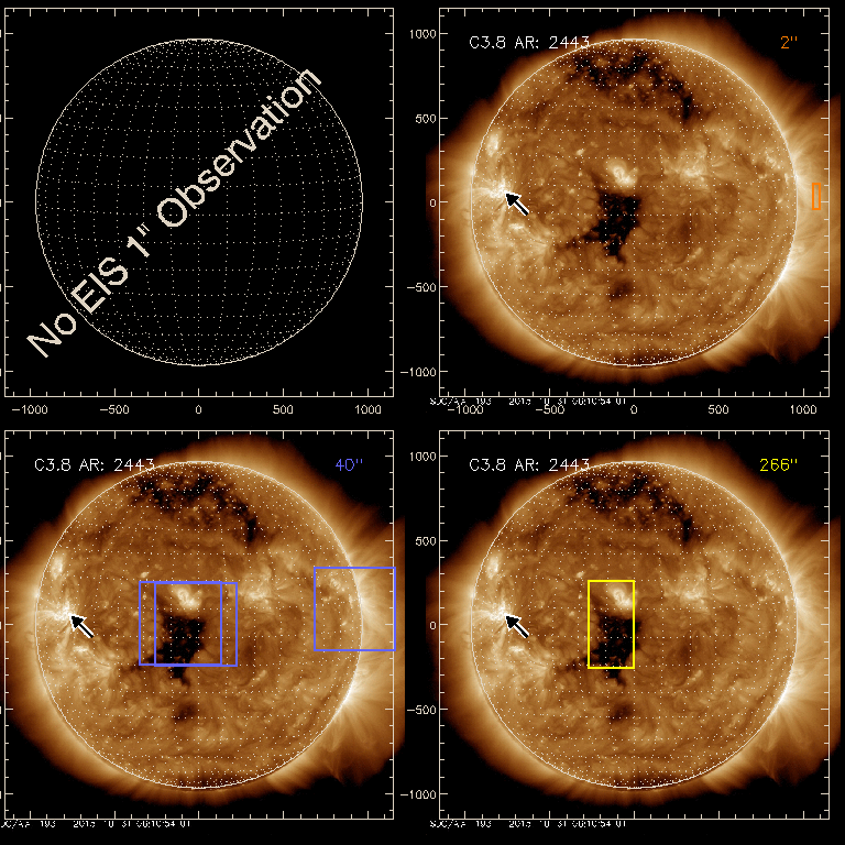 EIS Observation timeline overlay to GOES-Xray curve Code 1" 2" 40" 266" EIS Observations list for this event: STUDY ACRONYM ID DATE OBSERVED DESCRIPTION NOAA# TARGET 0 HH_Flare_raster_v6 | 49302 | 2015/10/31 00:03:13 | AR12436 obs | | Flare TIMELINE ID DATE OBSERVED FITS FILE XCEN (+W/-E) YCEN (+N/-S) DUR ----------------------------------------------------------------------------------------------------------------- 49302 | 2015/10/31 00:03:13.000 | eis_l0_20151031_000313.fits.gz | 1079.17 | 30.54 | 3m32s 49302 | 2015/10/31 00:06:48.000 | eis_l0_20151031_000648.fits.gz | 1079.09 | 30.47 | 3m31s 49302 | 2015/10/31 00:10:22.000 | eis_l0_20151031_001022.fits.gz | 1079.09 | 30.39 | 3m32s 49302 | 2015/10/31 00:13:57.000 | eis_l0_20151031_001357.fits.gz | 1079.17 | 30.31 | 3m31s 49302 | 2015/10/31 00:17:31.000 | eis_l0_20151031_001731.fits.gz | 1079.09 | 30.54 | 3m31s 49302 | 2015/10/31 00:21:05.000 | eis_l0_20151031_002105.fits.gz | 1079.09 | 30.31 | 3m32s 49302 | 2015/10/31 00:24:40.000 | eis_l0_20151031_002440.fits.gz | 1079.09 | 30.47 | 3m31s 49302 | 2015/10/31 00:28:14.000 | eis_l0_20151031_002814.fits.gz | 1079.02 | 30.39 | 3m32s 49302 | 2015/10/31 00:31:48.000 | eis_l0_20151031_003148.fits.gz | 1079.17 | 30.31 | 3m32s 49302 | 2015/10/31 00:35:23.000 | eis_l0_20151031_003523.fits.gz | 1079.17 | 30.47 | 3m32s 49302 | 2015/10/31 00:38:57.000 | eis_l0_20151031_003857.fits.gz | 1079.09 | 30.39 | 3m31s 49302 | 2015/10/31 00:42:31.000 | eis_l0_20151031_004231.fits.gz | 1079.09 | 30.39 | 3m32s 49302 | 2015/10/31 00:46:06.000 | eis_l0_20151031_004606.fits.gz | 1079.17 | 30.23 | 3m31s 49302 | 2015/10/31 00:49:40.000 | eis_l0_20151031_004940.fits.gz | 1079.09 | 30.39 | 3m31s 49302 | 2015/10/31 00:53:14.000 | eis_l0_20151031_005314.fits.gz | 1079.02 | 30.39 | 3m32s 49302 | 2015/10/31 00:56:49.000 | eis_l0_20151031_005649.fits.gz | 1079.09 | 30.39 | 3m31s 49302 | 2015/10/31 01:00:23.000 | eis_l0_20151031_010023.fits.gz | 1079.02 | 30.39 | 3m31s 49302 | 2015/10/31 01:03:57.000 | eis_l0_20151031_010357.fits.gz | 1079.17 | 30.47 | 3m31s 49302 | 2015/10/31 01:07:30.000 | eis_l0_20151031_010730.fits.gz | 1079.17 | 30.39 | 3m32s 49302 | 2015/10/31 01:11:05.000 | eis_l0_20151031_011105.fits.gz | 1079.17 | 30.47 | 3m31s 49302 | 2015/10/31 01:14:39.000 | eis_l0_20151031_011439.fits.gz | 1079.09 | 30.39 | 3m31s 49302 | 2015/10/31 01:18:12.000 | eis_l0_20151031_011812.fits.gz | 1079.09 | 30.39 | 3m32s 49302 | 2015/10/31 01:21:46.000 | eis_l0_20151031_012146.fits.gz | 1079.09 | 30.39 | 3m32s 49302 | 2015/10/31 01:25:21.000 | eis_l0_20151031_012521.fits.gz | 1079.17 | 30.39 | 3m31s 49302 | 2015/10/31 01:28:55.000 | eis_l0_20151031_012855.fits.gz | 1079.09 | 30.39 | 3m31s 1 HH_Flare_raster_v6 | 49303 | 2015/10/31 03:03:13 | AR12436 obs | | Flare TIMELINE ID DATE OBSERVED FITS FILE XCEN (+W/-E) YCEN (+N/-S) DUR ----------------------------------------------------------------------------------------------------------------- 49303 | 2015/10/31 03:03:13.000 | eis_l0_20151031_030313.fits.gz | 1079.17 | 32.47 | 3m31s 49303 | 2015/10/31 03:06:47.000 | eis_l0_20151031_030647.fits.gz | 1079.17 | 32.39 | 3m32s 49303 | 2015/10/31 03:10:21.000 | eis_l0_20151031_031021.fits.gz | 1079.09 | 32.47 | 3m32s 49303 | 2015/10/31 03:13:56.000 | eis_l0_20151031_031356.fits.gz | 1079.09 | 32.47 | 3m31s 49303 | 2015/10/31 03:17:30.000 | eis_l0_20151031_031730.fits.gz | 1079.09 | 32.31 | 3m31s 49303 | 2015/10/31 03:21:04.000 | eis_l0_20151031_032104.fits.gz | 1079.17 | 32.31 | 3m32s 49303 | 2015/10/31 03:24:39.000 | eis_l0_20151031_032439.fits.gz | 1079.17 | 32.31 | 3m31s 49303 | 2015/10/31 03:28:13.000 | eis_l0_20151031_032813.fits.gz | 1079.17 | 32.39 | 3m30s 49303 | 2015/10/31 03:31:46.000 | eis_l0_20151031_033146.fits.gz | 1079.09 | 32.39 | 3m32s 49303 | 2015/10/31 03:35:21.000 | eis_l0_20151031_033521.fits.gz | 1079.17 | 32.39 | 3m31s 49303 | 2015/10/31 03:38:55.000 | eis_l0_20151031_033855.fits.gz | 1079.17 | 32.39 | 3m32s 49303 | 2015/10/31 03:42:30.000 | eis_l0_20151031_034230.fits.gz | 1079.17 | 32.39 | 3m31s 49303 | 2015/10/31 03:46:04.000 | eis_l0_20151031_034604.fits.gz | 1079.09 | 32.31 | 3m32s 49303 | 2015/10/31 03:49:39.000 | eis_l0_20151031_034939.fits.gz | 1079.17 | 32.39 | 3m31s 49303 | 2015/10/31 03:53:13.000 | eis_l0_20151031_035313.fits.gz | 1079.09 | 32.47 | 3m31s 49303 | 2015/10/31 03:56:47.000 | eis_l0_20151031_035647.fits.gz | 1079.17 | 32.39 | 3m32s 49303 | 2015/10/31 04:00:22.000 | eis_l0_20151031_040022.fits.gz | 1079.09 | 32.39 | 3m31s 49303 | 2015/10/31 04:03:56.000 | eis_l0_20151031_040356.fits.gz | 1079.25 | 32.31 | 3m31s 49303 | 2015/10/31 04:07:30.000 | eis_l0_20151031_040730.fits.gz | 1079.17 | 32.31 | 3m32s 49303 | 2015/10/31 04:11:04.000 | eis_l0_20151031_041104.fits.gz | 1079.09 | 32.39 | 3m31s 49303 | 2015/10/31 04:14:38.000 | eis_l0_20151031_041438.fits.gz | 1079.25 | 32.39 | 3m32s 49303 | 2015/10/31 04:18:12.000 | eis_l0_20151031_041812.fits.gz | 1079.17 | 32.31 | 3m32s 49303 | 2015/10/31 04:21:47.000 | eis_l0_20151031_042147.fits.gz | 1079.09 | 32.39 | 3m31s 49303 | 2015/10/31 04:25:21.000 | eis_l0_20151031_042521.fits.gz | 1079.17 | 32.31 | 3m32s 49303 | 2015/10/31 04:28:55.000 | eis_l0_20151031_042855.fits.gz | 1079.09 | 32.39 | 3m32s 49303 | 2015/10/31 04:32:30.000 | eis_l0_20151031_043230.fits.gz | 1079.09 | 32.31 | 3m31s 49303 | 2015/10/31 04:36:04.000 | eis_l0_20151031_043604.fits.gz | 1079.09 | 32.39 | 3m31s 49303 | 2015/10/31 04:39:38.000 | eis_l0_20151031_043938.fits.gz | 1079.09 | 32.39 | 3m32s 49303 | 2015/10/31 04:43:13.000 | eis_l0_20151031_044313.fits.gz | 1079.09 | 32.31 | 3m31s 49303 | 2015/10/31 04:46:47.000 | eis_l0_20151031_044647.fits.gz | 1079.17 | 32.31 | 3m31s 49303 | 2015/10/31 04:50:21.000 | eis_l0_20151031_045021.fits.gz | 1079.09 | 32.31 | 3m32s 49303 | 2015/10/31 04:53:56.000 | eis_l0_20151031_045356.fits.gz | 1079.09 | 32.39 | 3m31s 49303 | 2015/10/31 04:57:30.000 | eis_l0_20151031_045730.fits.gz | 1079.17 | 32.31 | 3m31s 49303 | 2015/10/31 05:01:04.000 | eis_l0_20151