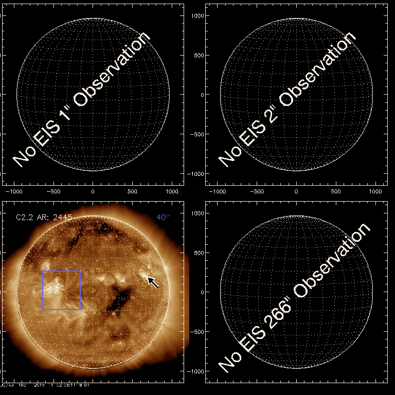 EIS Observation timeline overlay to GOES-Xray curve Code 1" 2" 40" 266" EIS Observations list for this event: STUDY ACRONYM ID DATE OBSERVED DESCRIPTION NOAA# TARGET 0 PRY_slot_context_v3 | 49315 | 2015/11/02 12:35:12 | Spectral atlas (AR) | 2443 | Active Region TIMELINE ID DATE OBSERVED FITS FILE XCEN (+W/-E) YCEN (+N/-S) DUR ----------------------------------------------------------------------------------------------------------------- 49315 | 2015/11/02 12:35:12.000 | eis_l0_20151102_123512.fits.gz | -398.17 | 15.42 | 2m56s : Check study information : Download file : View thumbnails For this event, also check for: