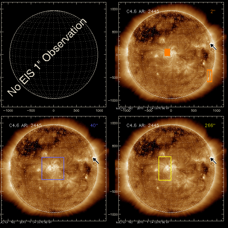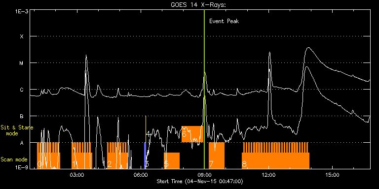 EIS Observation timeline overlay to GOES-Xray curve Code 1" 2" 40" 266" EIS Observations list for this event: STUDY ACRONYM ID DATE OBSERVED DESCRIPTION NOAA# TARGET 0 HH_Flare_raster_v6 | 49350 | 2015/11/04 01:08:13 | AR12443 observation | | Flare TIMELINE ID DATE OBSERVED FITS FILE XCEN (+W/-E) YCEN (+N/-S) DUR ----------------------------------------------------------------------------------------------------------------- 49350 | 2015/11/04 01:08:13.000 | eis_l0_20151104_010813.fits.gz | -114.37 | 45.13 | 3m32s 49350 | 2015/11/04 01:11:47.000 | eis_l0_20151104_011147.fits.gz | -113.82 | 45.05 | 3m32s 49350 | 2015/11/04 01:15:22.000 | eis_l0_20151104_011522.fits.gz | -113.21 | 45.05 | 3m30s 49350 | 2015/11/04 01:18:55.000 | eis_l0_20151104_011855.fits.gz | -112.74 | 45.13 | 3m31s 49350 | 2015/11/04 01:22:29.000 | eis_l0_20151104_012229.fits.gz | -112.20 | 45.13 | 3m31s 49350 | 2015/11/04 01:26:03.000 | eis_l0_20151104_012603.fits.gz | -111.66 | 44.97 | 3m31s 49350 | 2015/11/04 01:29:37.000 | eis_l0_20151104_012937.fits.gz | -111.04 | 44.97 | 3m32s 49350 | 2015/11/04 01:33:12.000 | eis_l0_20151104_013312.fits.gz | -110.50 | 45.05 | 3m31s 49350 | 2015/11/04 01:36:46.000 | eis_l0_20151104_013646.fits.gz | -109.96 | 45.05 | 3m32s 49350 | 2015/11/04 01:40:20.000 | eis_l0_20151104_014020.fits.gz | -109.42 | 45.05 | 3m32s 49350 | 2015/11/04 01:43:55.000 | eis_l0_20151104_014355.fits.gz | -108.80 | 44.97 | 3m31s 49350 | 2015/11/04 01:47:28.000 | eis_l0_20151104_014728.fits.gz | -108.26 | 44.90 | 3m32s 49350 | 2015/11/04 01:51:03.000 | eis_l0_20151104_015103.fits.gz | -107.72 | 45.13 | 3m31s 49350 | 2015/11/04 01:54:37.000 | eis_l0_20151104_015437.fits.gz | -107.26 | 45.05 | 3m32s 49350 | 2015/11/04 01:58:11.000 | eis_l0_20151104_015811.fits.gz | -106.64 | 45.05 | 3m32s 49350 | 2015/11/04 02:01:46.000 | eis_l0_20151104_020146.fits.gz | -106.02 | 45.05 | 3m31s 49350 | 2015/11/04 02:05:20.000 | eis_l0_20151104_020520.fits.gz | -105.40 | 44.97 | 3m31s 49350 | 2015/11/04 02:08:54.000 | eis_l0_20151104_020854.fits.gz | -105.02 | 44.97 | 3m31s 1 HH_Flare_raster_v6 | 49351 | 2015/11/04 02:45:13 | AR12443 observation | | Flare TIMELINE ID DATE OBSERVED FITS FILE XCEN (+W/-E) YCEN (+N/-S) DUR ----------------------------------------------------------------------------------------------------------------- 49351 | 2015/11/04 02:45:13.000 | eis_l0_20151104_024513.fits.gz | -99.30 | 45.05 | 3m32s 49351 | 2015/11/04 02:48:47.000 | eis_l0_20151104_024847.fits.gz | -98.76 | 45.05 | 3m33s 49351 | 2015/11/04 02:52:22.000 | eis_l0_20151104_025222.fits.gz | -98.22 | 45.05 | 3m32s 49351 | 2015/11/04 02:55:57.000 | eis_l0_20151104_025557.fits.gz | -97.60 | 44.97 | 3m31s 49351 | 2015/11/04 02:59:31.000 | eis_l0_20151104_025931.fits.gz | -97.14 | 45.05 | 3m32s 49351 | 2015/11/04 03:03:06.000 | eis_l0_20151104_030306.fits.gz | -96.52 | 45.05 | 3m31s 49351 | 2015/11/04 03:06:40.000 | eis_l0_20151104_030640.fits.gz | -96.06 | 45.05 | 3m32s 49351 | 2015/11/04 03:10:15.000 | eis_l0_20151104_031015.fits.gz | -95.44 | 45.05 | 3m32s 49351 | 2015/11/04 03:13:49.000 | eis_l0_20151104_031349.fits.gz | -94.90 | 45.13 | 3m32s 49351 | 2015/11/04 03:17:24.000 | eis_l0_20151104_031724.fits.gz | -94.28 | 45.05 | 3m31s 49351 | 2015/11/04 03:20:58.000 | eis_l0_20151104_032058.fits.gz | -93.74 | 45.05 | 3m32s 49351 | 2015/11/04 03:24:32.000 | eis_l0_20151104_032432.fits.gz | -93.28 | 45.05 | 3m32s 49351 | 2015/11/04 03:28:06.000 | eis_l0_20151104_032806.fits.gz | -92.66 | 44.97 | 3m32s 49351 | 2015/11/04 03:31:41.000 | eis_l0_20151104_033141.fits.gz | -92.12 | 45.13 | 3m32s 49351 | 2015/11/04 03:35:16.000 | eis_l0_20151104_033516.fits.gz | -91.58 | 44.97 | 3m30s 49351 | 2015/11/04 03:38:49.000 | eis_l0_20151104_033849.fits.gz | -90.88 | 44.97 | 3m32s 2 HH_Flare_raster_v6 | 49352 | 2015/11/04 04:25:13 | AR12443 observation | 2443 | Flare TIMELINE ID DATE OBSERVED FITS FILE XCEN (+W/-E) YCEN (+N/-S) DUR ----------------------------------------------------------------------------------------------------------------- 49352 | 2015/11/04 04:25:13.000 | eis_l0_20151104_042513.fits.gz | -83.78 | 44.97 | 3m32s 49352 | 2015/11/04 04:28:48.000 | eis_l0_20151104_042848.fits.gz | -83.31 | 45.13 | 3m31s 49352 | 2015/11/04 04:32:22.000 | eis_l0_20151104_043222.fits.gz | -82.69 | 44.90 | 3m31s 49352 | 2015/11/04 04:35:56.000 | eis_l0_20151104_043556.fits.gz | -82.08 | 45.13 | 3m31s 49352 | 2015/11/04 04:39:30.000 | eis_l0_20151104_043930.fits.gz | -81.54 | 45.13 | 3m32s 49352 | 2015/11/04 04:43:05.000 | eis_l0_20151104_044305.fits.gz | -80.99 | 45.05 | 3m31s 49352 | 2015/11/04 04:46:39.000 | eis_l0_20151104_044639.fits.gz | -80.45 | 44.90 | 3m31s 49352 | 2015/11/04 04:50:13.000 | eis_l0_20151104_045013.fits.gz | -79.84 | 44.97 | 3m32s 49352 | 2015/11/04 04:53:48.000 | eis_l0_20151104_045348.fits.gz | -79.37 | 45.05 | 3m31s 49352 | 2015/11/04 04:57:22.000 | eis_l0_20151104_045722.fits.gz | -78.75 | 45.05 | 3m32s 49352 | 2015/11/04 05:00:57.000 | eis_l0_20151104_050057.fits.gz | -78.21 | 44.97 | 3m31s 49352 | 2015/11/04 05:04:30.000 | eis_l0_20151104_050430.fits.gz | -77.67 | 44.90 | 3m32s 49352 | 2015/11/04 05:08:04.000 | eis_l0_20151104_050804.fits.gz | -77.06 | 44.97 | 3m32s 49352 | 2015/11/04 05:11:39.000 | eis_l0_20151104_051139.fits.gz | -76.51 | 45.05 | 3m32s 49352 | 2015/11/04 05:15:14.000 | eis_l0_20151104_051514.fits.gz | -75.97 | 45.05 | 3m31s 49352 | 2015/11/04 05:18:48.000 | eis_l0_20151104_051848.fits.gz | -75.43 | 45.21 | 3m32s 3 PRY_slot_contextLITE | 49330 | 2015/11/04 06:10:20 | Pointing monitoring | 2443 | Active Region TIMELINE ID DATE OBSERVED FITS FILE XCEN (+W/-E) YCEN (+N/-S) DUR ----------------------------------------------------------------------------------------------------------------- 49330 | 2015/11/04 06:10:20.000 | eis_l0_20151104_061020.fits.gz | -15.29 | -0.58 | 2m56s 4 XRT_synop_AIA | 49332 | 2015/11/04 06:14:26 | Pointing monitoring | 2443 | Quiet Sun TIMELINE ID DATE OBSERVED FITS FILE XCEN (+W/-E) YCEN (+N/-S) DUR -