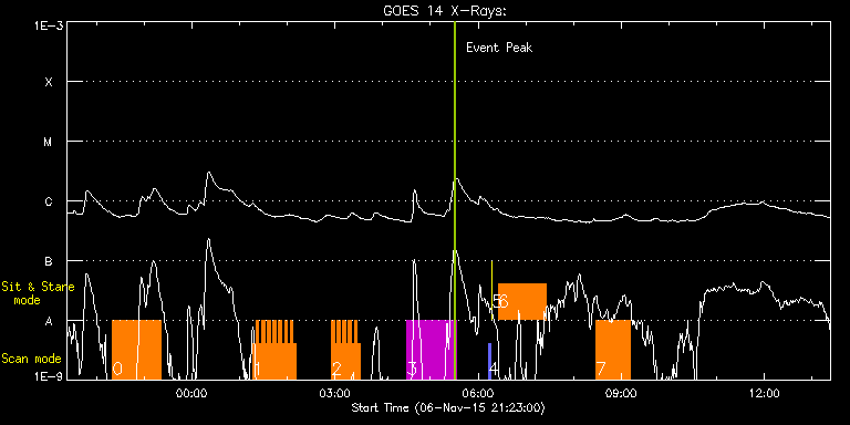 EIS Observation timeline overlay to GOES-Xray curve Code 1" 2" 40" 266" EIS Observations list for this event: STUDY ACRONYM ID DATE OBSERVED DESCRIPTION NOAA# TARGET 0 Atlas_60 | 49380 | 2015/11/06 22:20:11 | AR 12443 observation | | Quiet Sun TIMELINE ID DATE OBSERVED FITS FILE XCEN (+W/-E) YCEN (+N/-S) DUR ----------------------------------------------------------------------------------------------------------------- 49380 | 2015/11/06 22:20:11.000 | eis_l0_20151106_222011.fits.gz | 561.03 | 94.72 | 1h1m39s 1 HH_Flare_raster_v6 | 49374 | 2015/11/07 01:17:11 | AR 12443 observation | 2443 | Flare TIMELINE ID DATE OBSERVED FITS FILE XCEN (+W/-E) YCEN (+N/-S) DUR ----------------------------------------------------------------------------------------------------------------- 49374 | 2015/11/07 01:17:11.000 | eis_l0_20151107_011711.fits.gz | 582.63 | 96.04 | 3m32s 49374 | 2015/11/07 01:20:46.000 | eis_l0_20151107_012046.fits.gz | 583.09 | 96.11 | 3m31s 49374 | 2015/11/07 01:24:20.000 | eis_l0_20151107_012420.fits.gz | 583.48 | 96.11 | 3m32s 49374 | 2015/11/07 01:27:55.000 | eis_l0_20151107_012755.fits.gz | 584.02 | 96.11 | 3m31s 49374 | 2015/11/07 01:31:29.000 | eis_l0_20151107_013129.fits.gz | 584.25 | 96.27 | 3m31s 49374 | 2015/11/07 01:35:02.000 | eis_l0_20151107_013502.fits.gz | 584.79 | 96.04 | 3m32s 49374 | 2015/11/07 01:38:37.000 | eis_l0_20151107_013837.fits.gz | 585.33 | 96.19 | 3m31s 49374 | 2015/11/07 01:42:11.000 | eis_l0_20151107_014211.fits.gz | 585.72 | 96.27 | 3m31s 49374 | 2015/11/07 01:45:45.000 | eis_l0_20151107_014545.fits.gz | 586.10 | 96.27 | 3m31s 49374 | 2015/11/07 01:49:19.000 | eis_l0_20151107_014919.fits.gz | 586.64 | 96.19 | 3m31s 49374 | 2015/11/07 01:52:53.000 | eis_l0_20151107_015253.fits.gz | 587.03 | 96.27 | 3m32s 49374 | 2015/11/07 01:56:27.000 | eis_l0_20151107_015627.fits.gz | 587.42 | 96.34 | 3m32s 49374 | 2015/11/07 02:00:02.000 | eis_l0_20151107_020002.fits.gz | 587.88 | 96.34 | 3m32s 49374 | 2015/11/07 02:03:36.000 | eis_l0_20151107_020336.fits.gz | 588.34 | 96.42 | 3m31s 49374 | 2015/11/07 02:07:10.000 | eis_l0_20151107_020710.fits.gz | 588.81 | 96.42 | 3m32s 2 HH_Flare_raster_v6 | 49375 | 2015/11/07 02:55:38 | AR 12443 observation | 2443 | Flare TIMELINE ID DATE OBSERVED FITS FILE XCEN (+W/-E) YCEN (+N/-S) DUR ----------------------------------------------------------------------------------------------------------------- 49375 | 2015/11/07 02:55:38.000 | eis_l0_20151107_025538.fits.gz | 594.68 | 96.89 | 3m32s 49375 | 2015/11/07 02:59:13.000 | eis_l0_20151107_025913.fits.gz | 595.14 | 96.89 | 3m31s 49375 | 2015/11/07 03:02:47.000 | eis_l0_20151107_030247.fits.gz | 595.60 | 96.89 | 3m31s 49375 | 2015/11/07 03:06:21.000 | eis_l0_20151107_030621.fits.gz | 595.99 | 96.89 | 3m31s 49375 | 2015/11/07 03:09:54.000 | eis_l0_20151107_030954.fits.gz | 596.46 | 96.96 | 3m32s 49375 | 2015/11/07 03:13:29.000 | eis_l0_20151107_031329.fits.gz | 596.92 | 96.81 | 3m31s 49375 | 2015/11/07 03:17:03.000 | eis_l0_20151107_031703.fits.gz | 597.38 | 96.89 | 3m31s 49375 | 2015/11/07 03:20:37.000 | eis_l0_20151107_032037.fits.gz | 597.69 | 97.04 | 3m32s 49375 | 2015/11/07 03:24:12.000 | eis_l0_20151107_032412.fits.gz | 598.15 | 96.89 | 3m31s 49375 | 2015/11/07 03:27:46.000 | eis_l0_20151107_032746.fits.gz | 598.62 | 96.89 | 3m31s 3 HPW021VEL120x512v1_b | 49377 | 2015/11/07 04:30:26 | AR 12443 observation | 2443 | Active Region TIMELINE ID DATE OBSERVED FITS FILE XCEN (+W/-E) YCEN (+N/-S) DUR ----------------------------------------------------------------------------------------------------------------- 49377 | 2015/11/07 04:30:26.000 | eis_l0_20151107_043026.fits.gz | 600.01 | 152.43 | 1h1m53s 4 PRY_slot_contextLITE | 49356 | 2015/11/07 06:13:32 | Pointing monitoring | | Active Region TIMELINE ID DATE OBSERVED FITS FILE XCEN (+W/-E) YCEN (+N/-S) DUR ----------------------------------------------------------------------------------------------------------------- 49356 | 2015/11/07 06:13:32.000 | eis_l0_20151107_061332.fits.gz | -15.29 | -0.58 | 2m56s 5 XRT_synop_AIA | 49358 | 2015/11/07 06:17:24 | Pointing monitoring | | Quiet Sun TIMELINE ID DATE OBSERVED FITS FILE XCEN (+W/-E) YCEN (+N/-S) DUR ----------------------------------------------------------------------------------------------------------------- 49358 | 2015/11/07 06:17:24.000 | eis_l0_20151107_061724.fits.gz | -132.57 | -0.42 | 10s 6 eis_tornadoes_sns_n | 49370 | 2015/11/07 06:25:18 | IHOP237 | | Filament TIMELINE ID DATE OBSERVED FITS FILE XCEN (+W/-E) YCEN (+N/-S) DUR ----------------------------------------------------------------------------------------------------------------- 49370 | 2015/11/07 06:25:18.000 | eis_l0_20151107_062518.fits.gz | 854.31 | 457.65 | 59m53s 7 eis_tornadoes_scan_n | 49372 | 2015/11/07 08:28:11 | IHOP237 | | Filament TIMELINE ID DATE OBSERVED FITS FILE XCEN (+W/-E) YCEN (+N/-S) DUR ----------------------------------------------------------------------------------------------------------------- 49372 | 2015/11/07 08:28:11.000 | eis_l0_20151107_082811.fits.gz | 854.23 | 457.73 | 43m3s : Check study information : Download file : View thumbnails For this event, also check for: