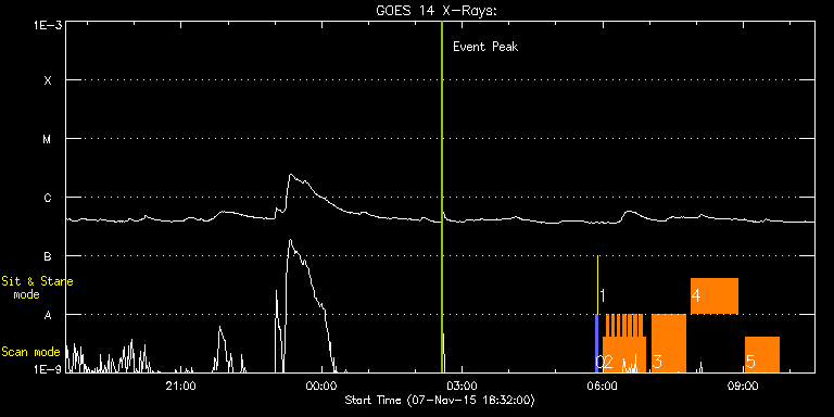 EIS Observation timeline overlay to GOES-Xray curve Code 1" 2" 40" 266" EIS Observations list for this event: STUDY ACRONYM ID DATE OBSERVED DESCRIPTION NOAA# TARGET 0 PRY_slot_contextLITE | 49391 | 2015/11/08 05:50:50 | Pointing monitoring | | Active Region TIMELINE ID DATE OBSERVED FITS FILE XCEN (+W/-E) YCEN (+N/-S) DUR ----------------------------------------------------------------------------------------------------------------- 49391 | 2015/11/08 05:50:50.000 | eis_l0_20151108_055050.fits.gz | -15.29 | -0.65 | 2m56s 1 XRT_synop_AIA | 49423 | 2015/11/08 05:54:04 | Pointing monitoring | | Quiet Sun TIMELINE ID DATE OBSERVED FITS FILE XCEN (+W/-E) YCEN (+N/-S) DUR ----------------------------------------------------------------------------------------------------------------- 49423 | 2015/11/08 05:54:04.000 | eis_l0_20151108_055404.fits.gz | -132.57 | -0.50 | 10s 2 HH_Flare_raster_v6 | 49402 | 2015/11/08 06:00:50 | AR 12443 observation | 2443 | Flare TIMELINE ID DATE OBSERVED FITS FILE XCEN (+W/-E) YCEN (+N/-S) DUR ----------------------------------------------------------------------------------------------------------------- 49402 | 2015/11/08 06:00:50.000 | eis_l0_20151108_060050.fits.gz | 726.60 | 110.67 | 3m32s 49402 | 2015/11/08 06:04:24.000 | eis_l0_20151108_060424.fits.gz | 726.98 | 110.51 | 3m32s 49402 | 2015/11/08 06:07:59.000 | eis_l0_20151108_060759.fits.gz | 727.29 | 110.44 | 3m31s 49402 | 2015/11/08 06:11:33.000 | eis_l0_20151108_061133.fits.gz | 727.60 | 110.59 | 3m32s 49402 | 2015/11/08 06:15:08.000 | eis_l0_20151108_061508.fits.gz | 727.91 | 110.51 | 3m32s 49402 | 2015/11/08 06:18:42.000 | eis_l0_20151108_061842.fits.gz | 728.22 | 110.67 | 3m31s 49402 | 2015/11/08 06:22:16.000 | eis_l0_20151108_062216.fits.gz | 728.60 | 110.75 | 3m32s 49402 | 2015/11/08 06:25:51.000 | eis_l0_20151108_062551.fits.gz | 729.07 | 110.75 | 3m31s 49402 | 2015/11/08 06:29:25.000 | eis_l0_20151108_062925.fits.gz | 729.38 | 110.75 | 3m30s 49402 | 2015/11/08 06:32:58.000 | eis_l0_20151108_063258.fits.gz | 729.69 | 110.75 | 3m32s 49402 | 2015/11/08 06:36:33.000 | eis_l0_20151108_063633.fits.gz | 730.00 | 110.82 | 3m32s 49402 | 2015/11/08 06:40:08.000 | eis_l0_20151108_064008.fits.gz | 730.38 | 110.90 | 3m31s 49402 | 2015/11/08 06:43:42.000 | eis_l0_20151108_064342.fits.gz | 730.61 | 111.05 | 3m32s 49402 | 2015/11/08 06:47:16.000 | eis_l0_20151108_064716.fits.gz | 731.08 | 110.90 | 3m32s 49402 | 2015/11/08 06:50:51.000 | eis_l0_20151108_065051.fits.gz | 731.46 | 110.82 | 3m32s 3 eis_tornadoes_scan_n | 49383 | 2015/11/08 07:03:13 | IHOP237; magnetic tornadoes | | Filament TIMELINE ID DATE OBSERVED FITS FILE XCEN (+W/-E) YCEN (+N/-S) DUR ----------------------------------------------------------------------------------------------------------------- 49383 | 2015/11/08 07:03:13.000 | eis_l0_20151108_070313.fits.gz | 783.74 | -592.44 | 43m3s 4 eis_tornadoes_sns_n | 49384 | 2015/11/08 07:53:13 | IHOP237; magnetic tornadoes | | Filament TIMELINE ID DATE OBSERVED FITS FILE XCEN (+W/-E) YCEN (+N/-S) DUR ----------------------------------------------------------------------------------------------------------------- 49384 | 2015/11/08 07:53:13.000 | eis_l0_20151108_075313.fits.gz | 783.81 | -592.44 | 59m51s 5 eis_tornadoes_scan_n | 49385 | 2015/11/08 09:03:13 | IHOP237; magnetic tornadoes | | Filament TIMELINE ID DATE OBSERVED FITS FILE XCEN (+W/-E) YCEN (+N/-S) DUR ----------------------------------------------------------------------------------------------------------------- 49385 | 2015/11/08 09:03:13.000 | eis_l0_20151108_090313.fits.gz | 783.74 | -592.52 | 43m2s : Check study information : Download file : View thumbnails For this event, also check for: