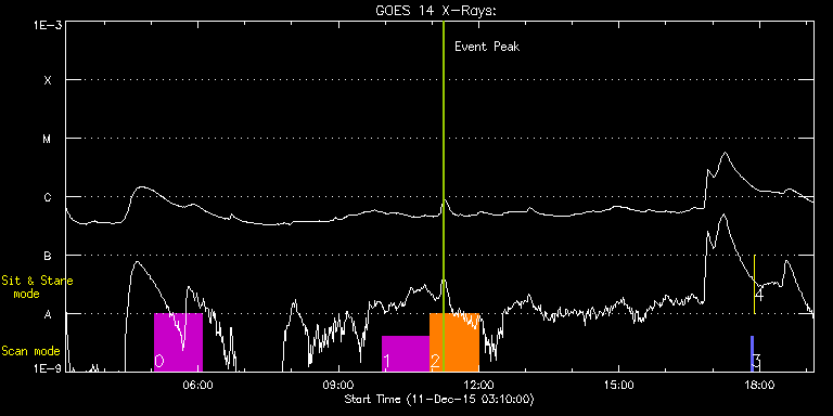 EIS Observation timeline overlay to GOES-Xray curve Code 1" 2" 40" 266" EIS Observations list for this event: STUDY ACRONYM ID DATE OBSERVED DESCRIPTION NOAA# TARGET 0 HPW021_VEL_120x512v1 | 49825 | 2015/12/11 05:03:39 | Active region studies | 2465 | Active Region TIMELINE ID DATE OBSERVED FITS FILE XCEN (+W/-E) YCEN (+N/-S) DUR ----------------------------------------------------------------------------------------------------------------- 49825 | 2015/12/11 05:03:39.000 | eis_l0_20151211_050339.fits.gz | -433.08 | -99.85 | 1h1m53s 1 HPW021_VEL_120x512v1 | 49792 | 2015/12/11 09:55:39 | Active region studies | 2465 | Active Region TIMELINE ID DATE OBSERVED FITS FILE XCEN (+W/-E) YCEN (+N/-S) DUR ----------------------------------------------------------------------------------------------------------------- 49792 | 2015/12/11 09:55:39.000 | eis_l0_20151211_095539.fits.gz | -391.05 | -99.23 | 1h1m53s 2 Atlas_60 | 49805 | 2015/12/11 10:57:50 | Active region studies | 2465 | Quiet Sun TIMELINE ID DATE OBSERVED FITS FILE XCEN (+W/-E) YCEN (+N/-S) DUR ----------------------------------------------------------------------------------------------------------------- 49805 | 2015/12/11 10:57:50.000 | eis_l0_20151211_105750.fits.gz | -382.66 | -101.15 | 1h1m40s 3 PRY_slot_contextLITE | 49778 | 2015/12/11 17:49:48 | Change of EIS pointing and alignment w | 2464 | Active Region TIMELINE ID DATE OBSERVED FITS FILE XCEN (+W/-E) YCEN (+N/-S) DUR ----------------------------------------------------------------------------------------------------------------- 49778 | 2015/12/11 17:49:48.000 | eis_l0_20151211_174948.fits.gz | -15.21 | -0.35 | 2m56s 4 XRT_synop_AIA | 49779 | 2015/12/11 17:53:03 | Change of EIS pointing and alignment w | 2464 | Quiet Sun TIMELINE ID DATE OBSERVED FITS FILE XCEN (+W/-E) YCEN (+N/-S) DUR ----------------------------------------------------------------------------------------------------------------- 49779 | 2015/12/11 17:53:03.000 | eis_l0_20151211_175303.fits.gz | -132.57 | -0.42 | 10s : Check study information : Download file : View thumbnails For this event, also check for: