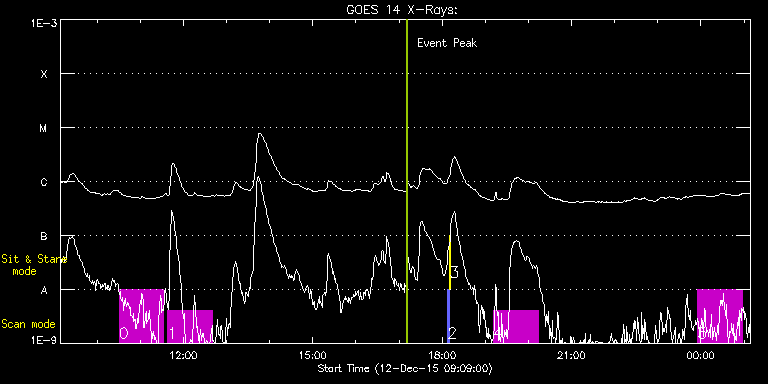 EIS Observation timeline overlay to GOES-Xray curve Code 1" 2" 40" 266" EIS Observations list for this event: STUDY ACRONYM ID DATE OBSERVED DESCRIPTION NOAA# TARGET 0 HPW021_VEL_120x512v1 | 49793 | 2015/12/12 10:30:38 | Active region studies | 2465 | Active Region TIMELINE ID DATE OBSERVED FITS FILE XCEN (+W/-E) YCEN (+N/-S) DUR ----------------------------------------------------------------------------------------------------------------- 49793 | 2015/12/12 10:30:38.000 | eis_l0_20151212_103038.fits.gz | -168.66 | -96.68 | 1h1m53s 1 HPW021_VEL_120x512v1 | 49798 | 2015/12/12 11:38:11 | Active region studies | 2465 | Active Region TIMELINE ID DATE OBSERVED FITS FILE XCEN (+W/-E) YCEN (+N/-S) DUR ----------------------------------------------------------------------------------------------------------------- 49798 | 2015/12/12 11:38:11.000 | eis_l0_20151212_113811.fits.gz | -158.15 | -96.68 | 1h1m53s 2 PRY_slot_contextLITE | 49780 | 2015/12/12 18:07:32 | Change of EIS pointing and alignment w | 2464 | Active Region TIMELINE ID DATE OBSERVED FITS FILE XCEN (+W/-E) YCEN (+N/-S) DUR ----------------------------------------------------------------------------------------------------------------- 49780 | 2015/12/12 18:07:32.000 | eis_l0_20151212_180732.fits.gz | -15.21 | -0.42 | 2m57s 3 XRT_synop_AIA | 49781 | 2015/12/12 18:10:47 | Change of EIS pointing and alignment w | 2465 | Quiet Sun TIMELINE ID DATE OBSERVED FITS FILE XCEN (+W/-E) YCEN (+N/-S) DUR ----------------------------------------------------------------------------------------------------------------- 49781 | 2015/12/12 18:10:47.000 | eis_l0_20151212_181047.fits.gz | -132.57 | -0.42 | 10s 4 HPW021_VEL_120x512v1 | 49820 | 2015/12/12 19:11:31 | Active region studies | | Active Region TIMELINE ID DATE OBSERVED FITS FILE XCEN (+W/-E) YCEN (+N/-S) DUR ----------------------------------------------------------------------------------------------------------------- 49820 | 2015/12/12 19:11:31.000 | eis_l0_20151212_191131.fits.gz | -87.39 | -95.91 | 1h1m53s 5 HPW021_VEL_120x512v1 | 49811 | 2015/12/12 23:55:38 | Active region studies | | Active Region TIMELINE ID DATE OBSERVED FITS FILE XCEN (+W/-E) YCEN (+N/-S) DUR ----------------------------------------------------------------------------------------------------------------- 49811 | 2015/12/12 23:55:38.000 | eis_l0_20151212_235538.fits.gz | -42.74 | -95.45 | 1h1m53s : Check study information : Download file : View thumbnails For this event, also check for: