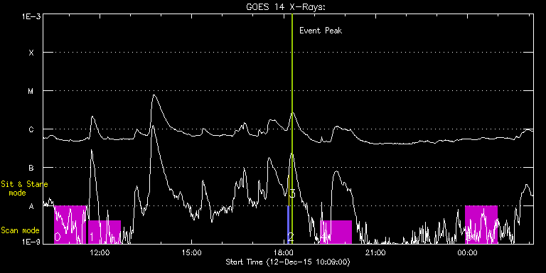 EIS Observation timeline overlay to GOES-Xray curve Code 1" 2" 40" 266" EIS Observations list for this event: STUDY ACRONYM ID DATE OBSERVED DESCRIPTION NOAA# TARGET 0 HPW021_VEL_120x512v1 | 49793 | 2015/12/12 10:30:38 | Active region studies | 2465 | Active Region TIMELINE ID DATE OBSERVED FITS FILE XCEN (+W/-E) YCEN (+N/-S) DUR ----------------------------------------------------------------------------------------------------------------- 49793 | 2015/12/12 10:30:38.000 | eis_l0_20151212_103038.fits.gz | -168.66 | -96.68 | 1h1m53s 1 HPW021_VEL_120x512v1 | 49798 | 2015/12/12 11:38:11 | Active region studies | 2465 | Active Region TIMELINE ID DATE OBSERVED FITS FILE XCEN (+W/-E) YCEN (+N/-S) DUR ----------------------------------------------------------------------------------------------------------------- 49798 | 2015/12/12 11:38:11.000 | eis_l0_20151212_113811.fits.gz | -158.15 | -96.68 | 1h1m53s 2 PRY_slot_contextLITE | 49780 | 2015/12/12 18:07:32 | Change of EIS pointing and alignment w | 2464 | Active Region TIMELINE ID DATE OBSERVED FITS FILE XCEN (+W/-E) YCEN (+N/-S) DUR ----------------------------------------------------------------------------------------------------------------- 49780 | 2015/12/12 18:07:32.000 | eis_l0_20151212_180732.fits.gz | -15.21 | -0.42 | 2m57s 3 XRT_synop_AIA | 49781 | 2015/12/12 18:10:47 | Change of EIS pointing and alignment w | 2465 | Quiet Sun TIMELINE ID DATE OBSERVED FITS FILE XCEN (+W/-E) YCEN (+N/-S) DUR ----------------------------------------------------------------------------------------------------------------- 49781 | 2015/12/12 18:10:47.000 | eis_l0_20151212_181047.fits.gz | -132.57 | -0.42 | 10s 4 HPW021_VEL_120x512v1 | 49820 | 2015/12/12 19:11:31 | Active region studies | | Active Region TIMELINE ID DATE OBSERVED FITS FILE XCEN (+W/-E) YCEN (+N/-S) DUR ----------------------------------------------------------------------------------------------------------------- 49820 | 2015/12/12 19:11:31.000 | eis_l0_20151212_191131.fits.gz | -87.39 | -95.91 | 1h1m53s 5 HPW021_VEL_120x512v1 | 49811 | 2015/12/12 23:55:38 | Active region studies | | Active Region TIMELINE ID DATE OBSERVED FITS FILE XCEN (+W/-E) YCEN (+N/-S) DUR ----------------------------------------------------------------------------------------------------------------- 49811 | 2015/12/12 23:55:38.000 | eis_l0_20151212_235538.fits.gz | -42.74 | -95.45 | 1h1m53s : Check study information : Download file : View thumbnails For this event, also check for: