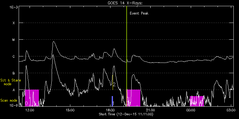 EIS Observation timeline overlay to GOES-Xray curve Code 1" 2" 40" 266" EIS Observations list for this event: STUDY ACRONYM ID DATE OBSERVED DESCRIPTION NOAA# TARGET 0 HPW021_VEL_120x512v1 | 49798 | 2015/12/12 11:38:11 | Active region studies | 2465 | Active Region TIMELINE ID DATE OBSERVED FITS FILE XCEN (+W/-E) YCEN (+N/-S) DUR ----------------------------------------------------------------------------------------------------------------- 49798 | 2015/12/12 11:38:11.000 | eis_l0_20151212_113811.fits.gz | -158.15 | -96.68 | 1h1m53s 1 PRY_slot_contextLITE | 49780 | 2015/12/12 18:07:32 | Change of EIS pointing and alignment w | 2464 | Active Region TIMELINE ID DATE OBSERVED FITS FILE XCEN (+W/-E) YCEN (+N/-S) DUR ----------------------------------------------------------------------------------------------------------------- 49780 | 2015/12/12 18:07:32.000 | eis_l0_20151212_180732.fits.gz | -15.21 | -0.42 | 2m57s 2 XRT_synop_AIA | 49781 | 2015/12/12 18:10:47 | Change of EIS pointing and alignment w | 2465 | Quiet Sun TIMELINE ID DATE OBSERVED FITS FILE XCEN (+W/-E) YCEN (+N/-S) DUR ----------------------------------------------------------------------------------------------------------------- 49781 | 2015/12/12 18:10:47.000 | eis_l0_20151212_181047.fits.gz | -132.57 | -0.42 | 10s 3 HPW021_VEL_120x512v1 | 49820 | 2015/12/12 19:11:31 | Active region studies | | Active Region TIMELINE ID DATE OBSERVED FITS FILE XCEN (+W/-E) YCEN (+N/-S) DUR ----------------------------------------------------------------------------------------------------------------- 49820 | 2015/12/12 19:11:31.000 | eis_l0_20151212_191131.fits.gz | -87.39 | -95.91 | 1h1m53s 4 HPW021_VEL_120x512v1 | 49811 | 2015/12/12 23:55:38 | Active region studies | | Active Region TIMELINE ID DATE OBSERVED FITS FILE XCEN (+W/-E) YCEN (+N/-S) DUR ----------------------------------------------------------------------------------------------------------------- 49811 | 2015/12/12 23:55:38.000 | eis_l0_20151212_235538.fits.gz | -42.74 | -95.45 | 1h1m53s : Check study information : Download file : View thumbnails For this event, also check for: