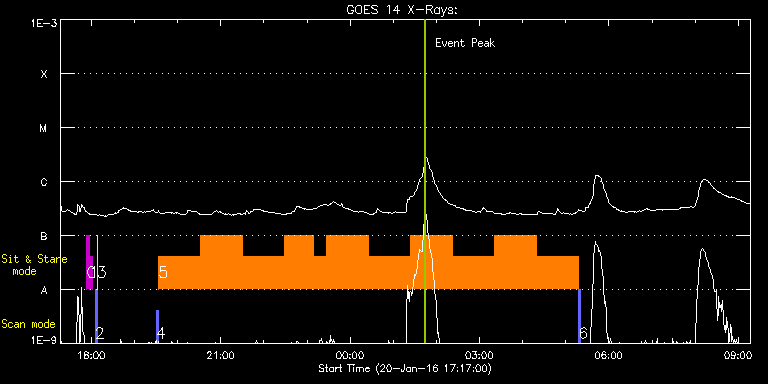 EIS Observation timeline overlay to GOES-Xray curve Code 1" 2" 40" 266" EIS Observations list for this event: STUDY ACRONYM ID DATE OBSERVED DESCRIPTION NOAA# TARGET 0 regcal071 | 50406 | 2016/01/20 17:53:41 | Dark exposures, CCD bottom rows (100s | | Engineering TIMELINE ID DATE OBSERVED FITS FILE XCEN (+W/-E) YCEN (+N/-S) DUR ----------------------------------------------------------------------------------------------------------------- 50406 | 2016/01/20 17:53:41.000 | eis_l0_20160120_175341.fits.gz | -561.60 | -612.10 | 3m22s 1 regcal072 | 50407 | 2016/01/20 17:57:30 | Dark exposures, top CCD rows (100s exp | | Engineering TIMELINE ID DATE OBSERVED FITS FILE XCEN (+W/-E) YCEN (+N/-S) DUR ----------------------------------------------------------------------------------------------------------------- 50407 | 2016/01/20 17:57:30.000 | eis_l0_20160120_175730.fits.gz | -561.22 | -101.02 | 3m22s 2 PRY_slot_contextLITE | 50381 | 2016/01/20 18:05:02 | EIS pointing mornitoring | | Active Region TIMELINE ID DATE OBSERVED FITS FILE XCEN (+W/-E) YCEN (+N/-S) DUR ----------------------------------------------------------------------------------------------------------------- 50381 | 2016/01/20 18:05:02.000 | eis_l0_20160120_180502.fits.gz | -15.14 | -0.50 | 2m57s 3 XRT_synop_AIA | 50382 | 2016/01/20 18:08:16 | EIS pointing mornitoring | | Quiet Sun TIMELINE ID DATE OBSERVED FITS FILE XCEN (+W/-E) YCEN (+N/-S) DUR ----------------------------------------------------------------------------------------------------------------- 50382 | 2016/01/20 18:08:16.000 | eis_l0_20160120_180816.fits.gz | -132.57 | -0.19 | 10s 4 PRY_slot_context_v3 | 50440 | 2016/01/20 19:30:26 | AR filament obs. | 2486 | Active Region TIMELINE ID DATE OBSERVED FITS FILE XCEN (+W/-E) YCEN (+N/-S) DUR ----------------------------------------------------------------------------------------------------------------- 50440 | 2016/01/20 19:30:26.000 | eis_l0_20160120_193026.fits.gz | -598.06 | -306.25 | 2m56s 5 Fe13_eruption | 50441 | 2016/01/20 19:33:46 | AR filament obs. | | Active Region TIMELINE ID DATE OBSERVED FITS FILE XCEN (+W/-E) YCEN (+N/-S) DUR ----------------------------------------------------------------------------------------------------------------- 50441 | 2016/01/20 19:33:46.000 | eis_l0_20160120_193346.fits.gz | -598.24 | -306.32 | 58m22s 50441 | 2016/01/20 20:32:10.000 | eis_l0_20160120_203210.fits.gz | -591.75 | -305.78 | 58m20s 50441 | 2016/01/20 21:30:33.000 | eis_l0_20160120_213033.fits.gz | -585.11 | -305.24 | 58m21s 50441 | 2016/01/20 22:28:56.000 | eis_l0_20160120_222856.fits.gz | -578.54 | -304.62 | 39m23s 50441 | 2016/01/20 22:35:52.000 | eis_l0_20160120_223552.fits.gz | -577.69 | -304.55 | 51m25s 50441 | 2016/01/20 23:27:20.000 | eis_l0_20160120_232720.fits.gz | -571.74 | -304.24 | 58m21s 50441 | 2016/01/21 00:25:44.000 | eis_l0_20160121_002544.fits.gz | -565.25 | -303.85 | 58m21s 50441 | 2016/01/21 01:24:08.000 | eis_l0_20160121_012408.fits.gz | -558.38 | -303.31 | 58m21s 50441 | 2016/01/21 02:22:31.000 | eis_l0_20160121_022231.fits.gz | -551.50 | -302.85 | 58m21s 50441 | 2016/01/21 03:20:55.000 | eis_l0_20160121_032055.fits.gz | -544.71 | -302.15 | 58m22s 50441 | 2016/01/21 04:19:19.000 | eis_l0_20160121_041919.fits.gz | -537.83 | -301.92 | 58m22s 6 PRY_slot_context_v3 | 50442 | 2016/01/21 05:17:52 | AR filament obs. | 2486 | Active Region TIMELINE ID DATE OBSERVED FITS FILE XCEN (+W/-E) YCEN (+N/-S) DUR ----------------------------------------------------------------------------------------------------------------- 50442 | 2016/01/21 05:17:52.000 | eis_l0_20160121_051752.fits.gz | -530.31 | -301.30 | 2m57s : Check study information : Download file : View thumbnails For this event, also check for: