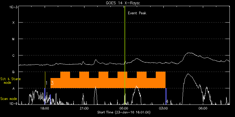 EIS Observation timeline overlay to GOES-Xray curve Code 1" 2" 40" 266" EIS Observations list for this event: STUDY ACRONYM ID DATE OBSERVED DESCRIPTION NOAA# TARGET 0 PRY_slot_contextLITE | 50391 | 2016/01/23 17:59:19 | EIS pointing mornitoring | 2487 | Active Region TIMELINE ID DATE OBSERVED FITS FILE XCEN (+W/-E) YCEN (+N/-S) DUR ----------------------------------------------------------------------------------------------------------------- 50391 | 2016/01/23 17:59:19.000 | eis_l0_20160123_175919.fits.gz | -15.14 | -0.42 | 2m56s 1 XRT_synop_AIA | 50392 | 2016/01/23 18:02:32 | EIS pointing mornitoring | 2487 | Quiet Sun TIMELINE ID DATE OBSERVED FITS FILE XCEN (+W/-E) YCEN (+N/-S) DUR ----------------------------------------------------------------------------------------------------------------- 50392 | 2016/01/23 18:02:32.000 | eis_l0_20160123_180232.fits.gz | -132.49 | -0.50 | 11s 2 PRY_slot_context_v3 | 50449 | 2016/01/23 18:24:04 | AR 12486 obs -flare sns obs | 2486 | Active Region TIMELINE ID DATE OBSERVED FITS FILE XCEN (+W/-E) YCEN (+N/-S) DUR ----------------------------------------------------------------------------------------------------------------- 50449 | 2016/01/23 18:24:04.000 | eis_l0_20160123_182404.fits.gz | -58.81 | -153.14 | 2m56s 3 Flare_SNS_v1 | 50450 | 2016/01/23 18:27:25 | AR 12486 obs -flare sns obs | | Flare TIMELINE ID DATE OBSERVED FITS FILE XCEN (+W/-E) YCEN (+N/-S) DUR ----------------------------------------------------------------------------------------------------------------- 50450 | 2016/01/23 18:27:25.000 | eis_l0_20160123_182725.fits.gz | -43.69 | -153.06 | 43m15s 50450 | 2016/01/23 19:10:56.000 | eis_l0_20160123_191056.fits.gz | -37.05 | -152.83 | 43m14s 50450 | 2016/01/23 19:54:26.000 | eis_l0_20160123_195426.fits.gz | -30.40 | -152.99 | 43m16s 50450 | 2016/01/23 20:37:58.000 | eis_l0_20160123_203758.fits.gz | -23.76 | -152.83 | 43m15s 50450 | 2016/01/23 21:21:29.000 | eis_l0_20160123_212129.fits.gz | -17.19 | -152.91 | 43m16s 50450 | 2016/01/23 22:05:01.000 | eis_l0_20160123_220501.fits.gz | -10.55 | -152.99 | 43m16s 50450 | 2016/01/23 22:48:33.000 | eis_l0_20160123_224833.fits.gz | -3.98 | -152.83 | 43m15s 50450 | 2016/01/23 23:32:04.000 | eis_l0_20160123_233204.fits.gz | 2.58 | -152.68 | 43m15s 50450 | 2016/01/24 00:15:35.000 | eis_l0_20160124_001535.fits.gz | 9.23 | -152.52 | 43m15s 50450 | 2016/01/24 00:59:06.000 | eis_l0_20160124_005906.fits.gz | 15.87 | -152.76 | 43m16s 50450 | 2016/01/24 01:42:38.000 | eis_l0_20160124_014238.fits.gz | 22.44 | -152.68 | 43m16s 50450 | 2016/01/24 02:26:10.000 | eis_l0_20160124_022610.fits.gz | 29.16 | -152.68 | 43m16s 4 PRY_slot_context_v3 | 50451 | 2016/01/24 03:09:52 | AR 12486 obs -flare sns obs | 2486 | Active Region TIMELINE ID DATE OBSERVED FITS FILE XCEN (+W/-E) YCEN (+N/-S) DUR ----------------------------------------------------------------------------------------------------------------- 50451 | 2016/01/24 03:09:52.000 | eis_l0_20160124_030952.fits.gz | 20.98 | -152.60 | 2m56s : Check study information : Download file : View thumbnails For this event, also check for: