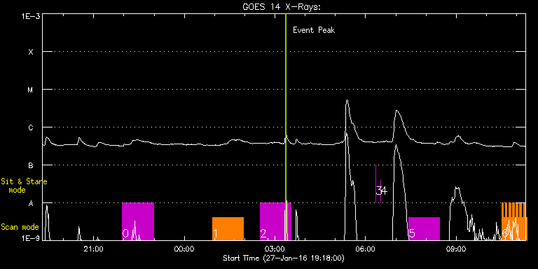 EIS Observation timeline overlay to GOES-Xray curve Code 1" 2" 40" 266" EIS Observations list for this event: STUDY ACRONYM ID DATE OBSERVED DESCRIPTION NOAA# TARGET 0 HPW021VEL120x512v1_b | 50480 | 2016/01/27 21:56:39 | AR12488 observation | | Active Region TIMELINE ID DATE OBSERVED FITS FILE XCEN (+W/-E) YCEN (+N/-S) DUR ----------------------------------------------------------------------------------------------------------------- 50480 | 2016/01/27 21:56:39.000 | eis_l0_20160127_215639.fits.gz | 590.22 | 40.60 | 1h1m53s 1 Atlas_60 | 50482 | 2016/01/28 00:55:26 | AR12488 observation | 2488 | Quiet Sun TIMELINE ID DATE OBSERVED FITS FILE XCEN (+W/-E) YCEN (+N/-S) DUR ----------------------------------------------------------------------------------------------------------------- 50482 | 2016/01/28 00:55:26.000 | eis_l0_20160128_005526.fits.gz | 607.89 | 145.97 | 1h1m39s 2 HPW021VEL120x512v1_b | 50512 | 2016/01/28 02:30:26 | AR12488 observation | 2488 | Active Region TIMELINE ID DATE OBSERVED FITS FILE XCEN (+W/-E) YCEN (+N/-S) DUR ----------------------------------------------------------------------------------------------------------------- 50512 | 2016/01/28 02:30:26.000 | eis_l0_20160128_023026.fits.gz | 617.75 | 32.89 | 1h1m52s 3 regcal076 | 50473 | 2016/01/28 06:20:11 | Flatfield, 1 exposure, led 100ms, ccd | | Engineering TIMELINE ID DATE OBSERVED FITS FILE XCEN (+W/-E) YCEN (+N/-S) DUR ----------------------------------------------------------------------------------------------------------------- 50473 | 2016/01/28 06:20:11.000 | eis_l0_20160128_062011.fits.gz | 699.70 | 40.57 | 2s 4 regcal070 | 50474 | 2016/01/28 06:30:12 | Flat field with overscan pixels (50*8) | | Engineering TIMELINE ID DATE OBSERVED FITS FILE XCEN (+W/-E) YCEN (+N/-S) DUR ----------------------------------------------------------------------------------------------------------------- 50474 | 2016/01/28 06:30:12.000 | eis_l0_20160128_063012.fits.gz | 700.86 | 296.50 | 2s 5 HPW021VEL120x512v1_b | 50483 | 2016/01/28 07:25:39 | AR12488 observation | 2488 | Active Region TIMELINE ID DATE OBSERVED FITS FILE XCEN (+W/-E) YCEN (+N/-S) DUR ----------------------------------------------------------------------------------------------------------------- 50483 | 2016/01/28 07:25:39.000 | eis_l0_20160128_072539.fits.gz | 656.02 | 21.19 | 1h1m53s 6 HH_Flare_raster_v6 | 50485 | 2016/01/28 10:30:26 | AR12488 observation | 2488 | Flare TIMELINE ID DATE OBSERVED FITS FILE XCEN (+W/-E) YCEN (+N/-S) DUR ----------------------------------------------------------------------------------------------------------------- 50485 | 2016/01/28 10:30:26.000 | eis_l0_20160128_103026.fits.gz | 656.05 | 141.87 | 3m32s 50485 | 2016/01/28 10:34:00.000 | eis_l0_20160128_103400.fits.gz | 656.44 | 141.95 | 3m32s 50485 | 2016/01/28 10:37:35.000 | eis_l0_20160128_103735.fits.gz | 656.83 | 142.10 | 3m31s 50485 | 2016/01/28 10:41:09.000 | eis_l0_20160128_104109.fits.gz | 657.14 | 141.95 | 3m32s 50485 | 2016/01/28 10:44:44.000 | eis_l0_20160128_104444.fits.gz | 657.60 | 141.87 | 3m31s 50485 | 2016/01/28 10:48:18.000 | eis_l0_20160128_104818.fits.gz | 657.98 | 141.95 | 3m31s 50485 | 2016/01/28 10:51:52.000 | eis_l0_20160128_105152.fits.gz | 658.37 | 141.64 | 3m31s 50485 | 2016/01/28 10:55:26.000 | eis_l0_20160128_105526.fits.gz | 658.68 | 141.79 | 3m32s 50485 | 2016/01/28 10:59:00.000 | eis_l0_20160128_105900.fits.gz | 659.14 | 141.72 | 3m32s 50485 | 2016/01/28 11:02:35.000 | eis_l0_20160128_110235.fits.gz | 659.45 | 141.64 | 3m31s 50485 | 2016/01/28 11:06:09.000 | eis_l0_20160128_110609.fits.gz | 659.91 | 141.64 | 3m31s 50485 | 2016/01/28 11:09:43.000 | eis_l0_20160128_110943.fits.gz | 660.22 | 141.64 | 3m31s 50485 | 2016/01/28 11:13:17.000 | eis_l0_20160128_111317.fits.gz | 660.61 | 141.56 | 3m31s 50485 | 2016/01/28 11:16:51.000 | eis_l0_20160128_111651.fits.gz | 661.00 | 141.56 | 3m32s 50485 | 2016/01/28 11:20:25.000 | eis_l0_20160128_112025.fits.gz | 661.38 | 141.56 | 3m32s 50485 | 2016/01/28 11:24:00.000 | eis_l0_20160128_112400.fits.gz | 661.69 | 141.49 | 3m31s 50485 | 2016/01/28 11:27:34.000 | eis_l0_20160128_112734.fits.gz | 662.08 | 141.25 | 3m31s 50485 | 2016/01/28 11:31:08.000 | eis_l0_20160128_113108.fits.gz | 662.54 | 141.33 | 3m32s 50485 | 2016/01/28 11:34:42.000 | eis_l0_20160128_113442.fits.gz | 662.93 | 141.25 | 3m32s 50485 | 2016/01/28 11:38:17.000 | eis_l0_20160128_113817.fits.gz | 663.24 | 141.33 | 3m31s 50485 | 2016/01/28 11:41:51.000 | eis_l0_20160128_114151.fits.gz | 663.62 | 141.18 | 3m32s 50485 | 2016/01/28 11:45:26.000 | eis_l0_20160128_114526.fits.gz | 664.01 | 141.18 | 3m30s 50485 | 2016/01/28 11:48:59.000 | eis_l0_20160128_114859.fits.gz | 664.55 | 141.18 | 3m33s 50485 | 2016/01/28 11:52:34.000 | eis_l0_20160128_115234.fits.gz | 664.86 | 140.94 | 3m31s 50485 | 2016/01/28 11:56:08.000 | eis_l0_20160128_115608.fits.gz | 665.17 | 141.02 | 3m31s 50485 | 2016/01/28 11:59:42.000 | eis_l0_20160128_115942.fits.gz | 665.55 | 141.02 | 3m32s 50485 | 2016/01/28 12:03:17.000 | eis_l0_20160128_120317.fits.gz | 665.94 | 140.94 | 3m31s 50485 | 2016/01/28 12:06:51.000 | eis_l0_20160128_120651.fits.gz | 666.40 | 141.02 | 3m31s 50485 | 2016/01/28 12:10:25.000 | eis_l0_20160128_121025.fits.gz | 666.79 | 140.87 | 3m32s 50485 | 2016/01/28 12:13:59.000 | eis_l0_20160128_121359.fits.gz | 667.10 | 140.87 | 3m32s 50485 | 2016/01/28 12:17:34.000 | eis_l0_20160128_121734.fits.gz | 667.41 | 140.79 | 3m31s 50485 | 2016/01/28 12:21:08.000 | eis_l0_20160128_122108.fits.gz | 667.87 | 140.71 | 3m32s 50485 | 2016/01/28 12:24:43.000 | eis_l0_20160128_122443.fits.gz | 668.26 | 140.79 | 3m32s 50485 | 2016/01/28 12:28:17.000 | eis_l0_20160128_122817.fits.gz | 668.57 | 140.79 | 3m32s 50485 | 2016/01/28 12:31:52.000 | eis_l0_20160128_123152.fits.gz | 668.95 | 140.71 | 3m32s 50485 | 2016/01/28 12:35:27.000 | eis_l0_20160128_123527.fits.gz | 669.34 | 140.71 | 3m31s 50485 | 2016/01/28 12:39:01.000 | eis_l0_20160128_123901.fits.gz | 669.73 | 140.63 | 3m32s 50485 |