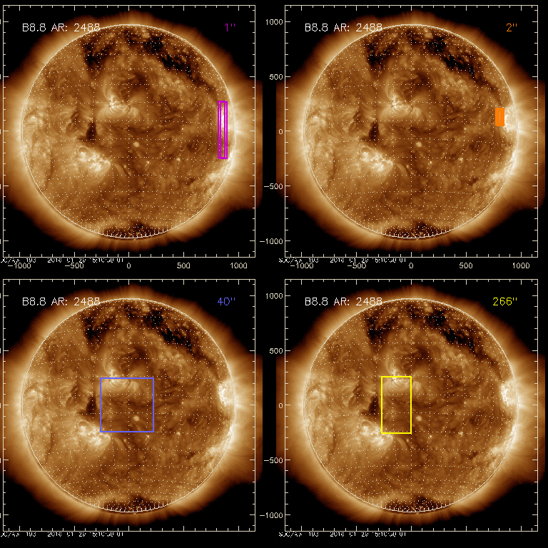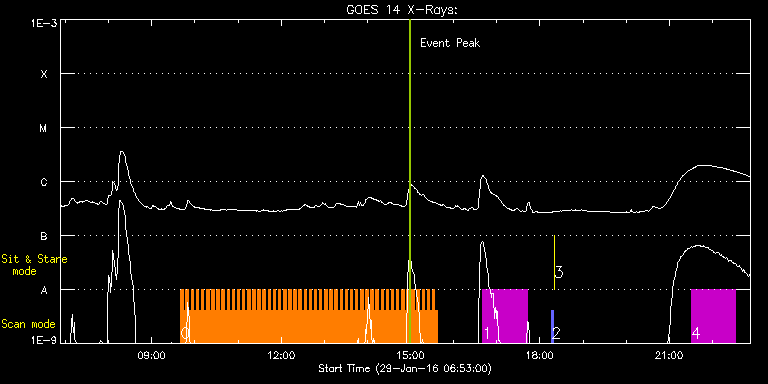 EIS Observation timeline overlay to GOES-Xray curve Code 1" 2" 40" 266" EIS Observations list for this event: STUDY ACRONYM ID DATE OBSERVED DESCRIPTION NOAA# TARGET 0 HH_Flare_raster_v6 | 50489 | 2016/01/29 09:40:25 | AR12488 observation | 2488 | Flare TIMELINE ID DATE OBSERVED FITS FILE XCEN (+W/-E) YCEN (+N/-S) DUR ----------------------------------------------------------------------------------------------------------------- 50489 | 2016/01/29 09:40:25.000 | eis_l0_20160129_094025.fits.gz | 797.10 | 129.34 | 3m31s 50489 | 2016/01/29 09:43:59.000 | eis_l0_20160129_094359.fits.gz | 797.41 | 129.11 | 3m31s 50489 | 2016/01/29 09:47:33.000 | eis_l0_20160129_094733.fits.gz | 797.64 | 129.11 | 3m32s 50489 | 2016/01/29 09:51:08.000 | eis_l0_20160129_095108.fits.gz | 797.95 | 128.95 | 3m32s 50489 | 2016/01/29 09:54:42.000 | eis_l0_20160129_095442.fits.gz | 798.18 | 129.03 | 3m32s 50489 | 2016/01/29 09:58:17.000 | eis_l0_20160129_095817.fits.gz | 798.57 | 128.88 | 3m31s 50489 | 2016/01/29 10:01:51.000 | eis_l0_20160129_100151.fits.gz | 798.80 | 128.80 | 3m31s 50489 | 2016/01/29 10:05:25.000 | eis_l0_20160129_100525.fits.gz | 799.03 | 128.57 | 3m31s 50489 | 2016/01/29 10:08:59.000 | eis_l0_20160129_100859.fits.gz | 799.27 | 128.72 | 3m32s 50489 | 2016/01/29 10:12:34.000 | eis_l0_20160129_101234.fits.gz | 799.57 | 128.72 | 3m31s 50489 | 2016/01/29 10:16:08.000 | eis_l0_20160129_101608.fits.gz | 799.88 | 128.57 | 3m31s 50489 | 2016/01/29 10:19:42.000 | eis_l0_20160129_101942.fits.gz | 800.19 | 128.49 | 3m31s 50489 | 2016/01/29 10:23:16.000 | eis_l0_20160129_102316.fits.gz | 800.35 | 128.65 | 3m31s 50489 | 2016/01/29 10:26:50.000 | eis_l0_20160129_102650.fits.gz | 800.66 | 128.49 | 3m31s 50489 | 2016/01/29 10:30:24.000 | eis_l0_20160129_103024.fits.gz | 800.89 | 128.26 | 3m31s 50489 | 2016/01/29 10:33:58.000 | eis_l0_20160129_103358.fits.gz | 801.27 | 128.41 | 3m32s 50489 | 2016/01/29 10:37:32.000 | eis_l0_20160129_103732.fits.gz | 801.58 | 128.34 | 3m32s 50489 | 2016/01/29 10:41:07.000 | eis_l0_20160129_104107.fits.gz | 801.82 | 128.26 | 3m31s 50489 | 2016/01/29 10:44:41.000 | eis_l0_20160129_104441.fits.gz | 802.12 | 128.34 | 3m30s 50489 | 2016/01/29 10:48:14.000 | eis_l0_20160129_104814.fits.gz | 802.35 | 128.34 | 3m32s 50489 | 2016/01/29 10:51:49.000 | eis_l0_20160129_105149.fits.gz | 802.66 | 128.18 | 3m31s 50489 | 2016/01/29 10:55:23.000 | eis_l0_20160129_105523.fits.gz | 802.90 | 128.18 | 3m32s 50489 | 2016/01/29 10:58:57.000 | eis_l0_20160129_105857.fits.gz | 803.28 | 128.10 | 3m32s 50489 | 2016/01/29 11:02:32.000 | eis_l0_20160129_110232.fits.gz | 803.51 | 128.03 | 3m31s 50489 | 2016/01/29 11:06:06.000 | eis_l0_20160129_110606.fits.gz | 803.75 | 127.95 | 3m32s 50489 | 2016/01/29 11:09:40.000 | eis_l0_20160129_110940.fits.gz | 804.05 | 127.95 | 3m32s 50489 | 2016/01/29 11:13:15.000 | eis_l0_20160129_111315.fits.gz | 804.36 | 127.79 | 3m31s 50489 | 2016/01/29 11:16:49.000 | eis_l0_20160129_111649.fits.gz | 804.44 | 127.95 | 3m31s 50489 | 2016/01/29 11:20:23.000 | eis_l0_20160129_112023.fits.gz | 804.83 | 127.87 | 3m31s 50489 | 2016/01/29 11:23:57.000 | eis_l0_20160129_112357.fits.gz | 805.14 | 127.79 | 3m32s 50489 | 2016/01/29 11:27:31.000 | eis_l0_20160129_112731.fits.gz | 805.45 | 127.72 | 3m32s 50489 | 2016/01/29 11:31:06.000 | eis_l0_20160129_113106.fits.gz | 805.75 | 127.56 | 3m32s 50489 | 2016/01/29 11:34:40.000 | eis_l0_20160129_113440.fits.gz | 805.91 | 127.64 | 3m32s 50489 | 2016/01/29 11:38:15.000 | eis_l0_20160129_113815.fits.gz | 806.22 | 127.56 | 3m31s 50489 | 2016/01/29 11:41:48.000 | eis_l0_20160129_114148.fits.gz | 806.53 | 127.49 | 3m33s 50489 | 2016/01/29 11:45:23.000 | eis_l0_20160129_114523.fits.gz | 806.84 | 127.25 | 3m32s 50489 | 2016/01/29 11:48:57.000 | eis_l0_20160129_114857.fits.gz | 806.91 | 127.56 | 3m32s 50489 | 2016/01/29 11:52:32.000 | eis_l0_20160129_115232.fits.gz | 807.30 | 127.33 | 3m32s 50489 | 2016/01/29 11:56:07.000 | eis_l0_20160129_115607.fits.gz | 807.53 | 127.25 | 3m31s 50489 | 2016/01/29 11:59:41.000 | eis_l0_20160129_115941.fits.gz | 807.84 | 127.25 | 3m31s 50489 | 2016/01/29 12:03:15.000 | eis_l0_20160129_120315.fits.gz | 808.15 | 127.18 | 3m32s 50489 | 2016/01/29 12:06:49.000 | eis_l0_20160129_120649.fits.gz | 808.38 | 127.18 | 3m32s 50489 | 2016/01/29 12:10:24.000 | eis_l0_20160129_121024.fits.gz | 808.77 | 127.10 | 3m31s 50489 | 2016/01/29 12:13:58.000 | eis_l0_20160129_121358.fits.gz | 808.92 | 127.18 | 3m32s 50489 | 2016/01/29 12:17:33.000 | eis_l0_20160129_121733.fits.gz | 809.23 | 126.95 | 3m31s 50489 | 2016/01/29 12:21:07.000 | eis_l0_20160129_122107.fits.gz | 809.46 | 127.10 | 3m32s 50489 | 2016/01/29 12:24:41.000 | eis_l0_20160129_122441.fits.gz | 809.77 | 126.95 | 3m32s 50489 | 2016/01/29 12:28:16.000 | eis_l0_20160129_122816.fits.gz | 810.08 | 126.79 | 3m31s 50489 | 2016/01/29 12:31:50.000 | eis_l0_20160129_123150.fits.gz | 810.23 | 126.95 | 3m32s 50489 | 2016/01/29 12:35:24.000 | eis_l0_20160129_123524.fits.gz | 810.47 | 126.79 | 3m32s 50489 | 2016/01/29 12:38:59.000 | eis_l0_20160129_123859.fits.gz | 810.85 | 126.79 | 3m32s 50489 | 2016/01/29 12:42:33.000 | eis_l0_20160129_124233.fits.gz | 811.16 | 126.56 | 3m32s 50489 | 2016/01/29 12:46:08.000 | eis_l0_20160129_124608.fits.gz | 811.39 | 126.64 | 3m32s 50489 | 2016/01/29 12:49:43.000 | eis_l0_20160129_124943.fits.gz | 811.70 | 126.48 | 3m31s 50489 | 2016/01/29 12:53:17.000 | eis_l0_20160129_125317.fits.gz | 811.86 | 126.64 | 3m31s 50489 | 2016/01/29 12:56:51.000 | eis_l0_20160129_125651.fits.gz | 812.09 | 126.48 | 3m32s 50489 | 2016/01/29 13:00:25.000 | eis_l0_20160129_130025.fits.gz | 812.32 | 126.48 | 3m32s 50489 | 2016/01/29 13:04:00.000 | eis_l0_20160129_130400.fits.gz | 812.78 | 126.40 | 3m31s 50489 | 2016/01/29 13:07:34.000 | eis_l0_20160129_130734.fits.gz | 812.94 | 126.33 | 3m32s 50489 | 2016/01/29 13:11:08.000 | eis_l0_20160129_131108.fits.gz | 813.33 | 126.33 | 3m31s 50489 | 2016/01/29 13:14:42.000 | eis_l0_20160129_131442.fits.gz | 813.48 | 126.17 | 3m32s 50489 | 2016/01